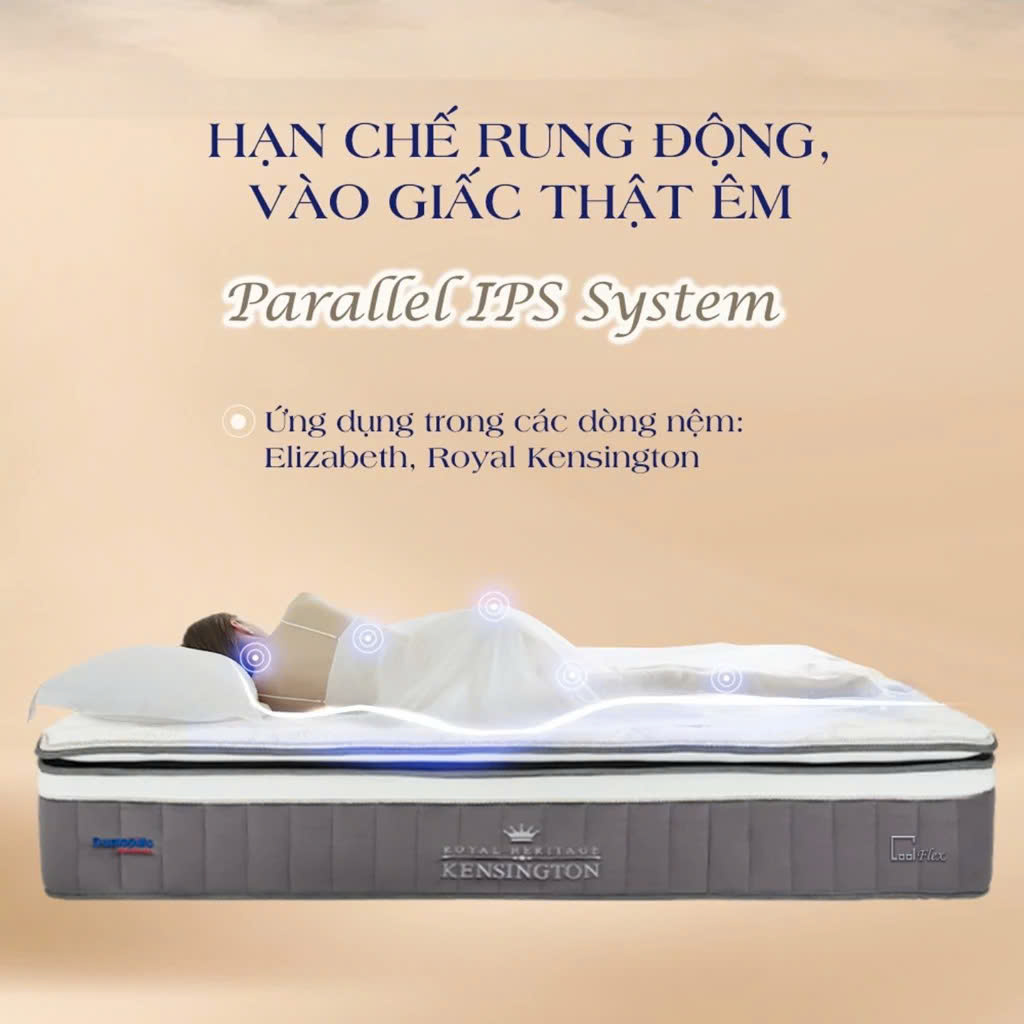 - IPS PARALLEL Với hệ thống lò xo túi song song mang đến sự hỗ trợ nhẹ nhàng nhưng chắc chắn, đặc biệt hỗ trợ nâng đỡ tốt cho vùng vai và đầu gối