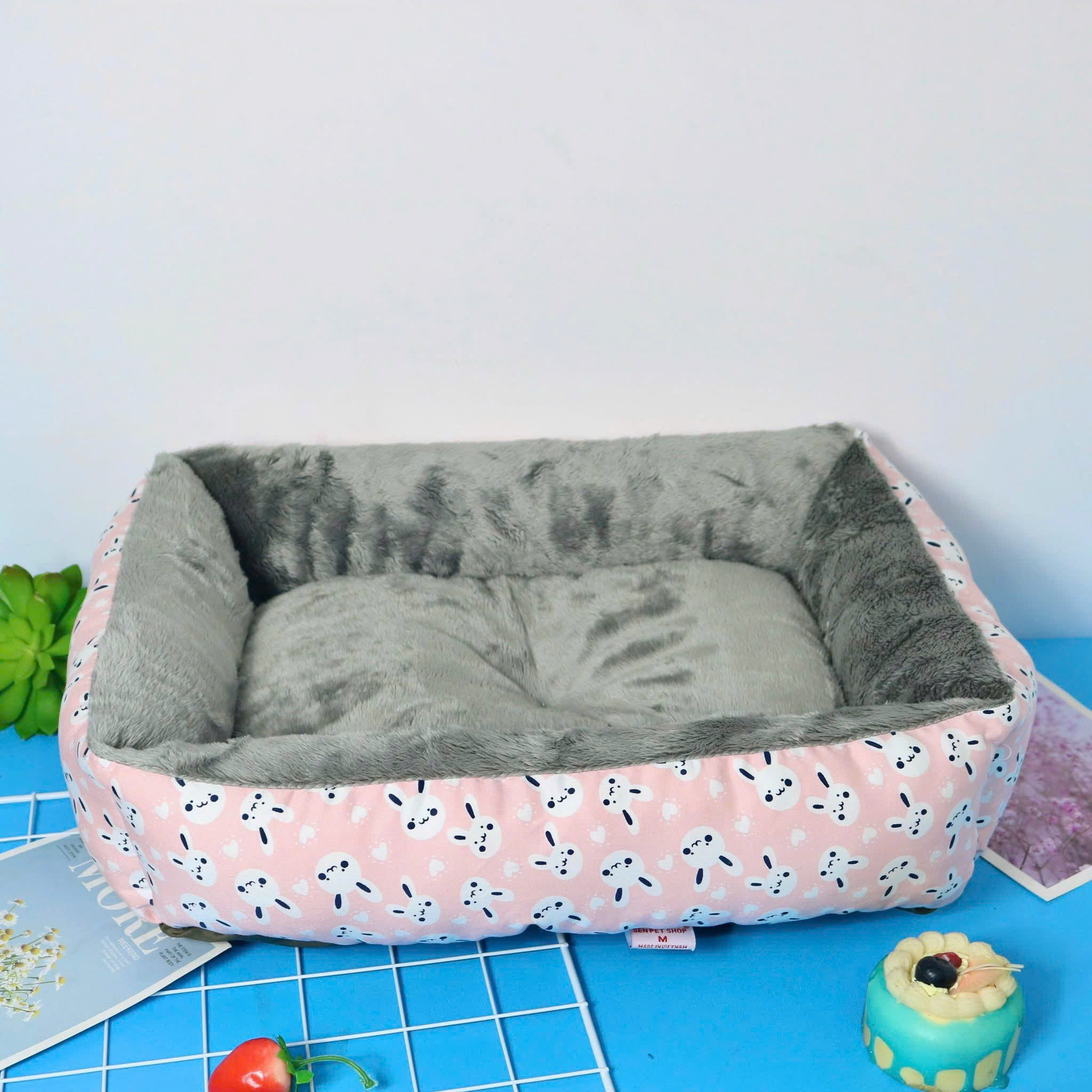 - Thiết kế : Nệm vuông thỏ giường cho thú cưng chó mèo. Cấu tạo ruột gòn bi 3D, không lo vón cục