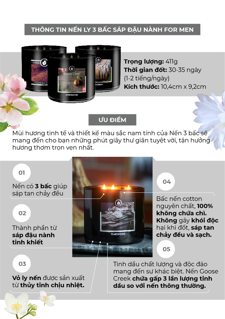 ✨Nến ly 3 bấc sáp đậu nành For Men Goose Creek (411g) - Oud