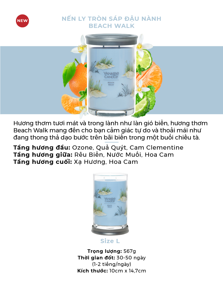 ✨Nến ly tròn sáp đậu nành Yankee Candle size L (567g) - Beach Walk