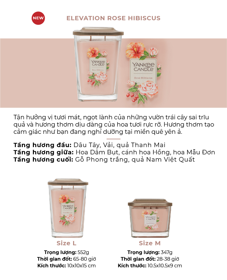 ✨Nến ly vuông Elevation Yankee Candle size S - Rose Hibiscus (96g)