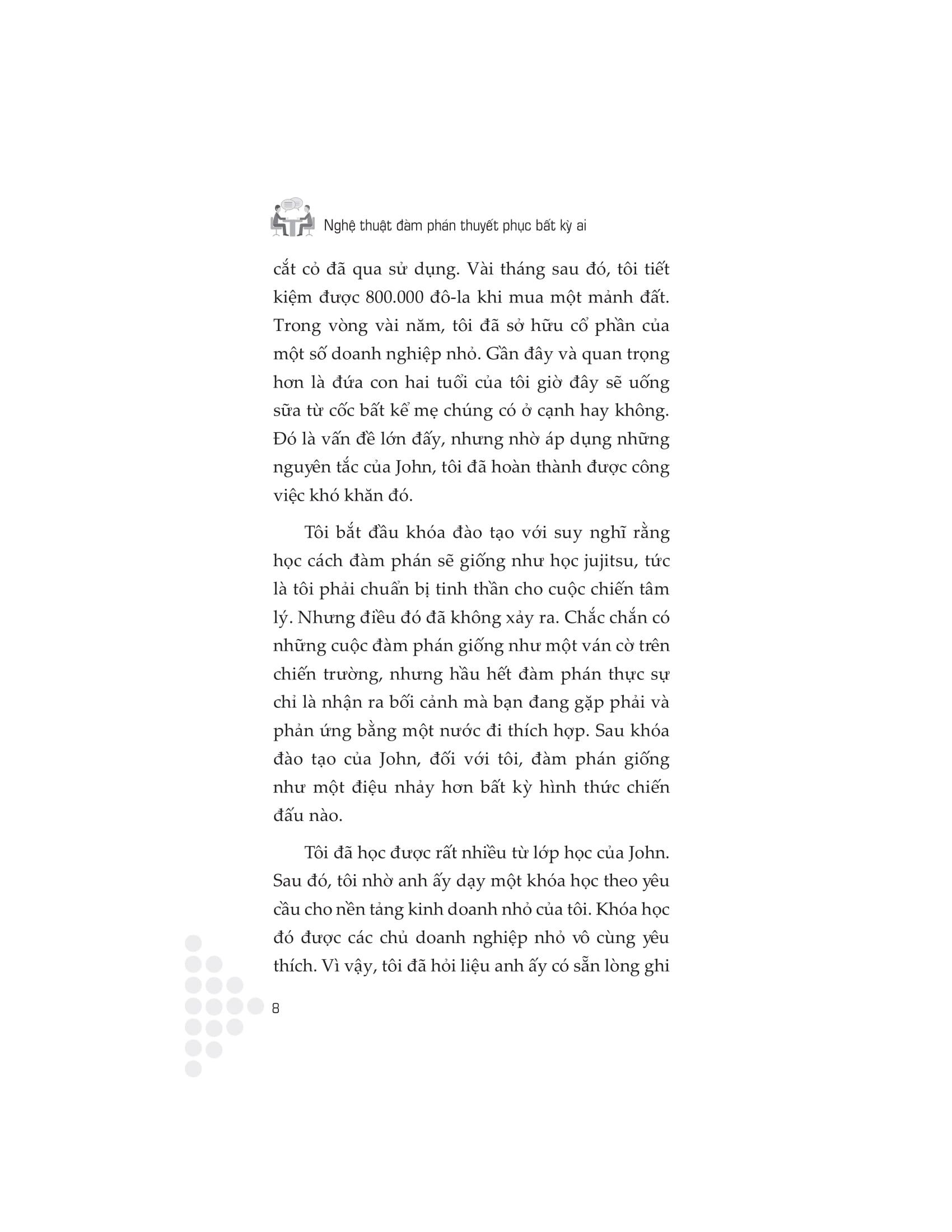 Sự thật là các nhà lãnh đạo doanh nghiệp và tổ chức dành hơn một nửa thời gian làm việc của m.ình để tham gia vào quá trình đàm phán. Đây là cách họ thực hiện các thỏa thuận, lãnh đạo nhân viên và quản lý các mối quan hệ. Hầu hết các nhà lãnh đạo học cách đàm phán trong công việc thông qua một quá trình thực hành và tự rút ra lỗi sai của m.ình. Trong thị trường cạnh tranh ngày nay, không có thời gian để thử nghiệm, cũng không có chỗ để mắc lỗi.