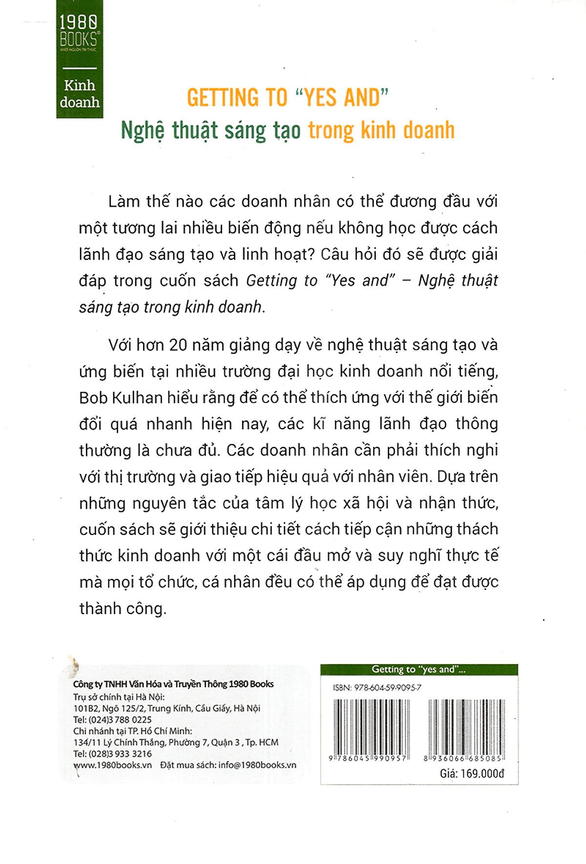 Bob Kulhan – CEO của Business Improv, một công ty chuyên tư vấn về chiến lược phát triển và khai thác tiềm lực cho các doanh nghiệp đã đề ra phương pháp “Yes and” để giải quyết vấn đề này. Cuốn sách “Getting to ‘Yes and’: Nghệ thuật sáng tạo trong kinh doanh” gợi mở cho người đọc cách tiếp cận những cơ hội kinh doanh một cách “không giống ai”, không bị giới hạn.