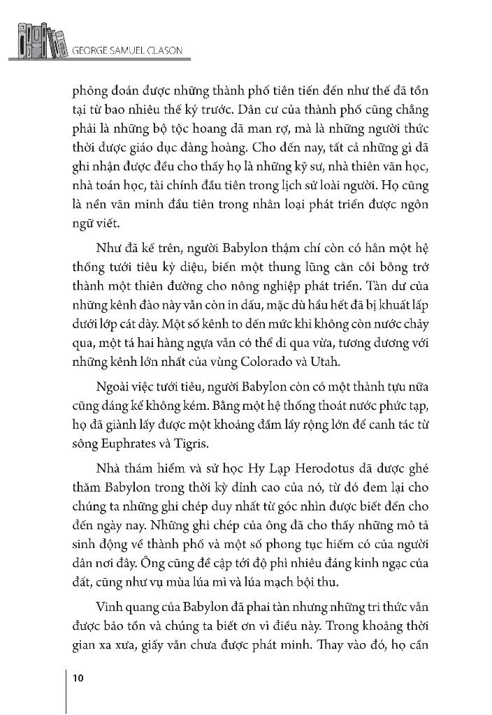 Những trang sách này sẽ đưa chúng ta trở lại Vương quốc Babylon cổ đại, cái nôi nuôi dưỡng những nguyên lý cơ bản về tài chính mà giờ đây con người hiện đại đã kế thừa và vận dụng trên toàn thế giới.