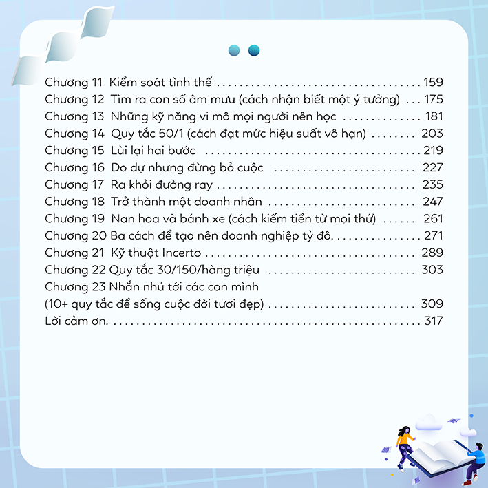 NGƯỜI THÀNH CÔNG CÓ LỐI ĐI RIÊNG    Linh hoạt thay đổi là điều rất quan trọng    Một đại dịch khủng khiếp đã khiến cả hành tinh hoàn toàn bị tắt ngúm. Bốn mươi triệu người lao động ở Mỹ nộp đơn xin trợ cấp thất nghiệp. Thế giới tưởng như đã đi đến đường cùng. Tình hình bắt đầu hỗn loạn. Biểu tình diễn ra ở khắp mọi nơi. Và rồi nền kinh tế mở cửa trở lại, màn sương bắt đầu mờ dần đi và hậu quả là thứ mà chúng ta có thể nhìn thấy. Nhiều doanh nghiệp phá sản. Nhiều ngành công nghiệp bị thay đổi hoàn toàn. Và nhiều người trở nên lạc lối trong thế giới mới.   Các khả năng như linh hoạt thay đổi, xác định đam mê, thành thạo các kỹ năng, kiếm tiền từ điều mình yêu thích, những điều này chưa bao giờ quan trọng đến thế. Ở trường, không ai dạy chúng ta kỹ năng “vượt quyền”. Thầy cô không bao giờ nói với chúng ta rằng thế giới có thể bỗng nhiên trở nên rất đáng sợ trừ phi chúng ta biết cách sống trong vùng đất khó đoán định ấy. [Sách] Người Thành Công Có Lối Đi Riêng | [Book] Skip the Line Quy tắc 10.000 thử nghiệm trong sách “Người thành công có lối đi riêng”   Làm thế nào để có được tự do và không phải nghe lời sai bảo từ người khác?   Làm thế nào để chúng ta có thể làm chủ một kỹ năng, để từ đó được đồng nghiệp tôn trọng, kiếm ra tiền, đồng thời thấu hiểu hơn về đam mê và mục đích thực sự của bản thân?   Làm thế nào để chúng ta vẫn có thể thư giãn, tận hưởng thời gian với bạn bè, gia đình và những người xung quanh?   Những ý tưởng trong cuốn sách “” có thể giúp bạn bừng tỉnh. Quy tắc 10.000 thử nghiệm mà tác giả sẽ mô tả trong cuốn sách này là không được chìm đắm trong “ham muốn thất bại liên hoàn”.   Trong cuốn sách này chúng ta sẽ không làm theo quy tắc 10.000 giờ – quy tắc cho rằng nếu bạn kiên trì luyện tập một kỹ năng nào đó trong 10.000 giờ, bạn sẽ trở thành một trong những người làm công việc đó giỏi nhất thế giới.   Đây là cách tiếp cận những thay đổi và khủng hoảng bằng cách sử dụng các công cụ giúp tăng cường sự sáng tạo, kỹ năng thực hành, thuyết phục, lãnh đạo và hiệu suất làm việc. Tất cả những kỹ năng này khi kết hợp với nhau sẽ đưa bạn tới thành công vượt ngoài sức tưởng tượng, với tốc độ mà người khác sẽ nói là bất khả thi.   Khi bạn sử dụng Quy tắc 1% và các công cụ trong cuốn sách này (ví dụ như Quy tắc tăng hiệu suất 50/1, các kỹ thuật về phép toán ý tưởng và kiểm soát tình thế), bạn sẽ nhận ra rằng bạn có lượng thời gian gần như vô hạn để làm nên những tiến bộ 1% mỗi ngày trong cuộc sống của mình.   Mọi thứ trong cuốn sách SKIP THE LINE: The 10,000 Experiments Rule and Other Surprising Advice for Reaching Your Goals này đều được kết nối với nhau. Nhảy cóc không phải là các mẹo có thể áp dụng trong mọi tình huống. Nó cũng không bao gồm các lối tắt khi một tình huống nhất định. Nó là một cách sống cho phép đam mê dẫn dắt việc học hỏi, thời gian và nhiều nguồn lực khác. Bằng cách luyện tập để giỏi hơn mỗi ngày, bạn sẽ có thể làm những việc gần với sở thích và đam mê của mình nhất.   Tác giả: James Altucher Công ty phát hành: Mã sản phẩm: 8935278607120 Nhà xuất bản: NXB Thế Giới Kích thước: 15.5 x 23.5 cm Số trang: 320 Khối lượng: 600.0 gram Năm phát hành: 08/2023