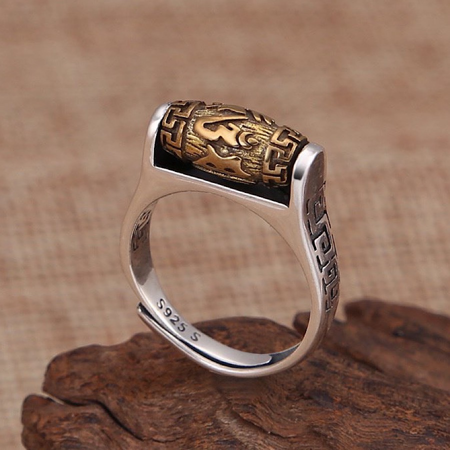 Nhẫn Bản Xoay Lục Tự Minh Chú Om Mani Padme Hum