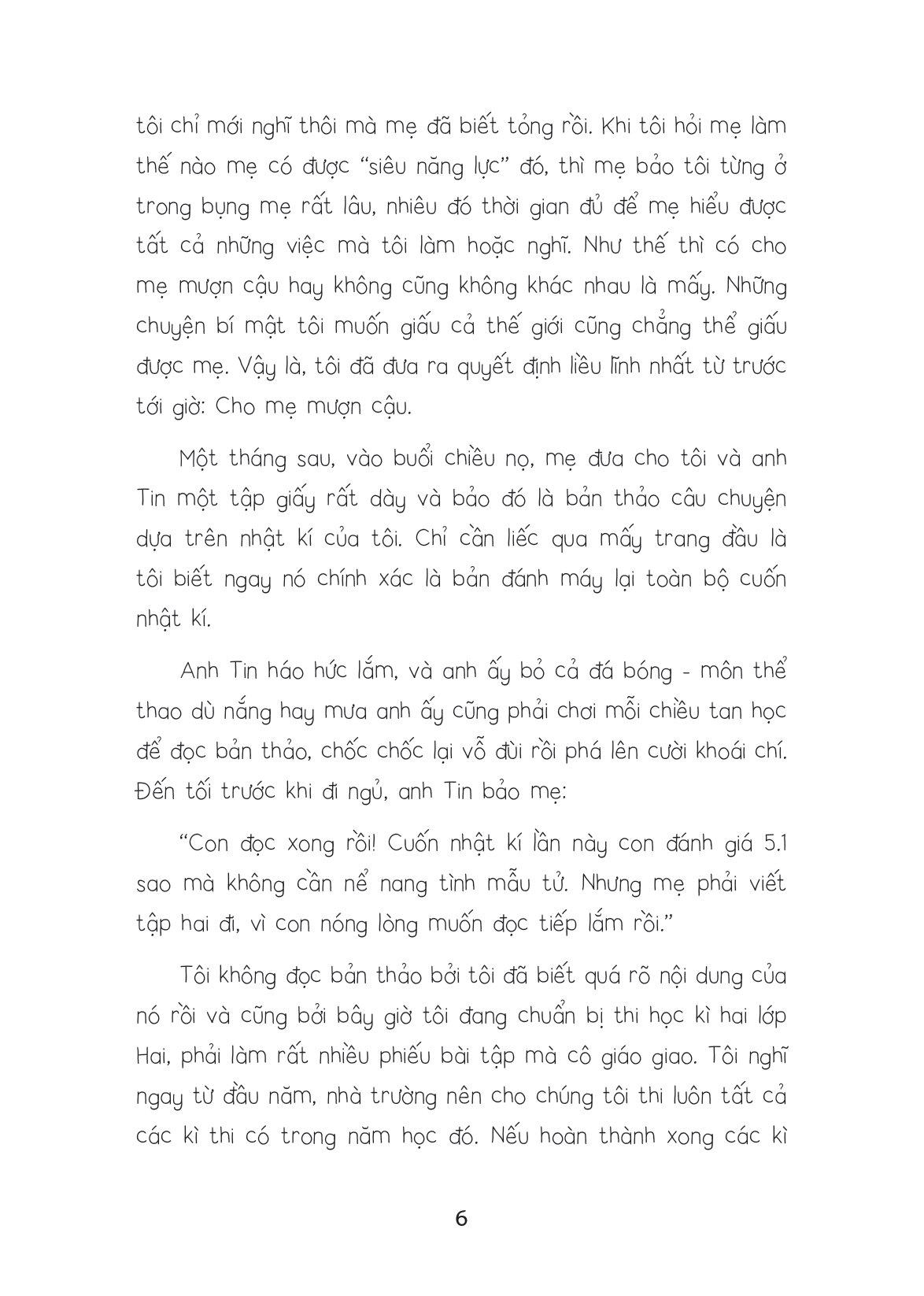 Mình là Tũn Cá, Fishy và cả Bống nữa. Bạn có thể gọi m.ình bằng tên nào cũng được, miễn là sau này, khi m.ình mở tiệm bánh, bạn mang tiền đến mua thật nhiều bánh cho m.ình là được. Năm nay m.ình bảy tuổi, học chưa giỏi và chữ viết cũng chưa đẹp. Ước mơ của m.ình là có bảy người mẹ giống hệt mẹ của m.ình bây giờ vì một mẹ thì chả bao giờ đủ cả. Lí do vì sao thì bạn hãy đọc cuốn nhật kí này là biết ngay! Khì khì!