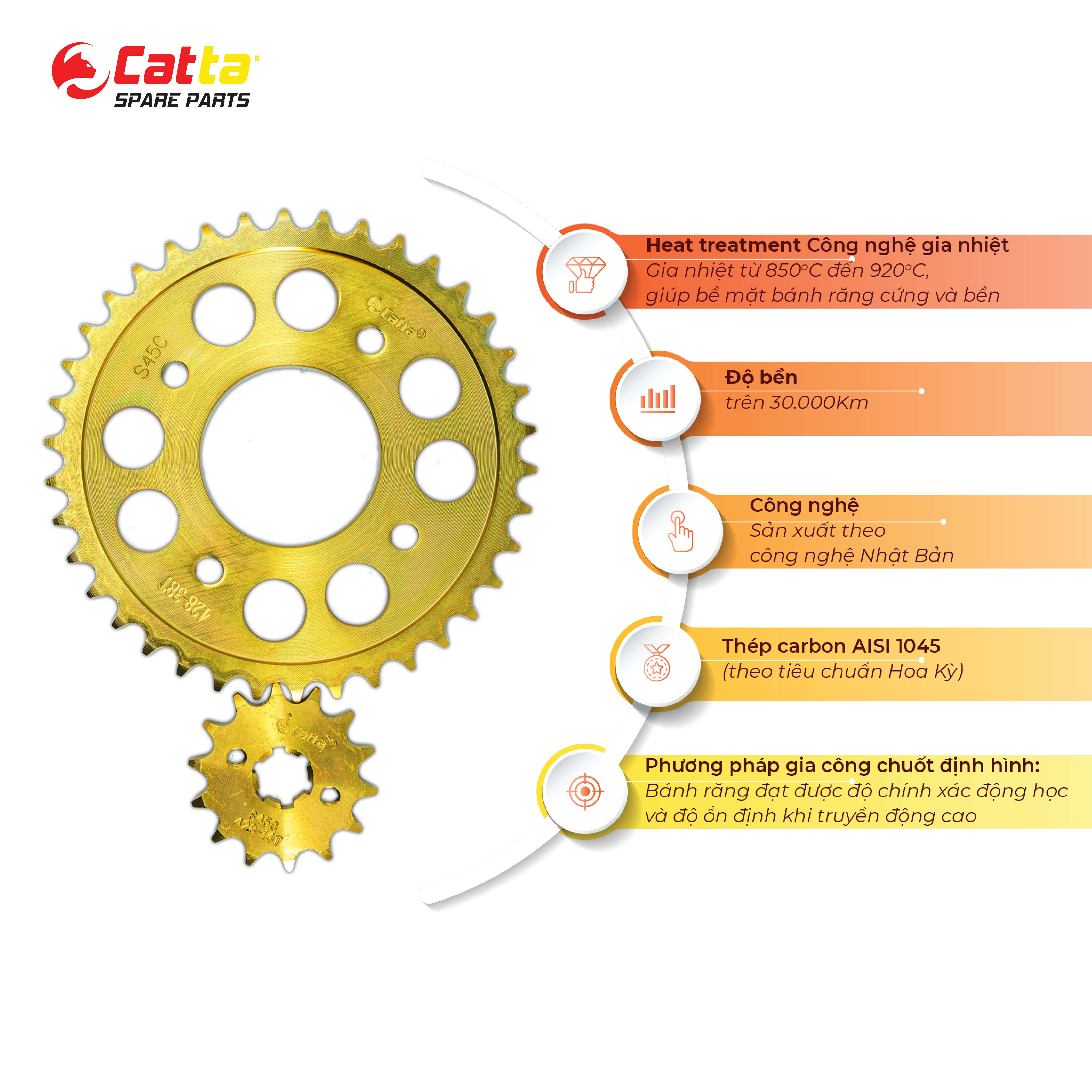 BỘ NHÔNG SÊN DĨA EXCITER (2006 - 2010) THƯƠNG HIỆU CATTA SPARE PARTS Nhông sên dĩa Exciter (bộ nhông xích Exciter) thương hiệu CATTA Spare Parts được sản xuất từ thép carbon S45C chuyên dụng
