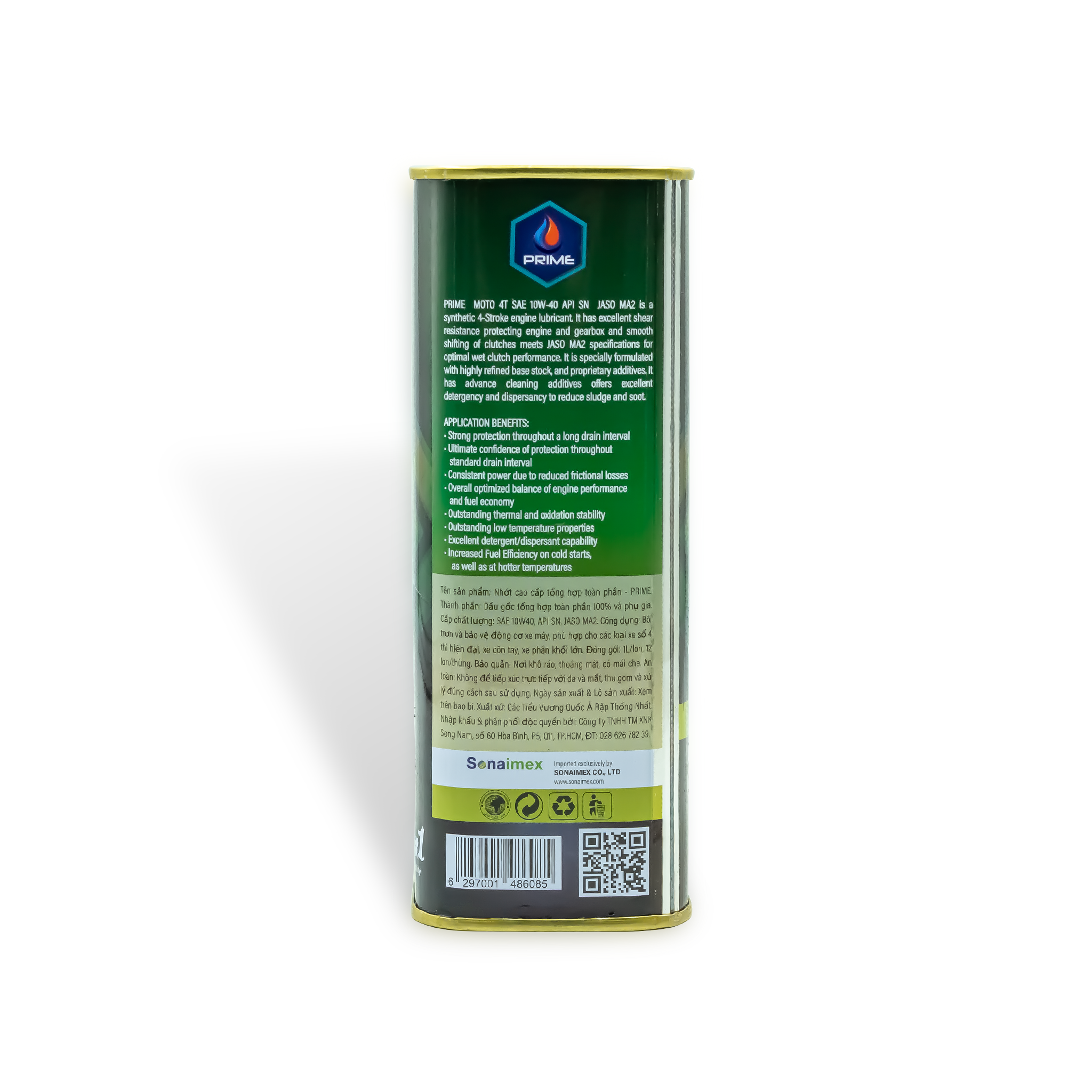 NHỚT TỔNG HỢP TOÀN PHẦN PRIME SAE 10W40, API SN, JASO MA2, FULLY SYNTHETIC LON 1 LÍT NHẬP KHẨU 100%, CÔNG NGHỆ SẢN XUẤT ĐỨC (Chuyên dụng & đúng dung tích cho các dòng xe