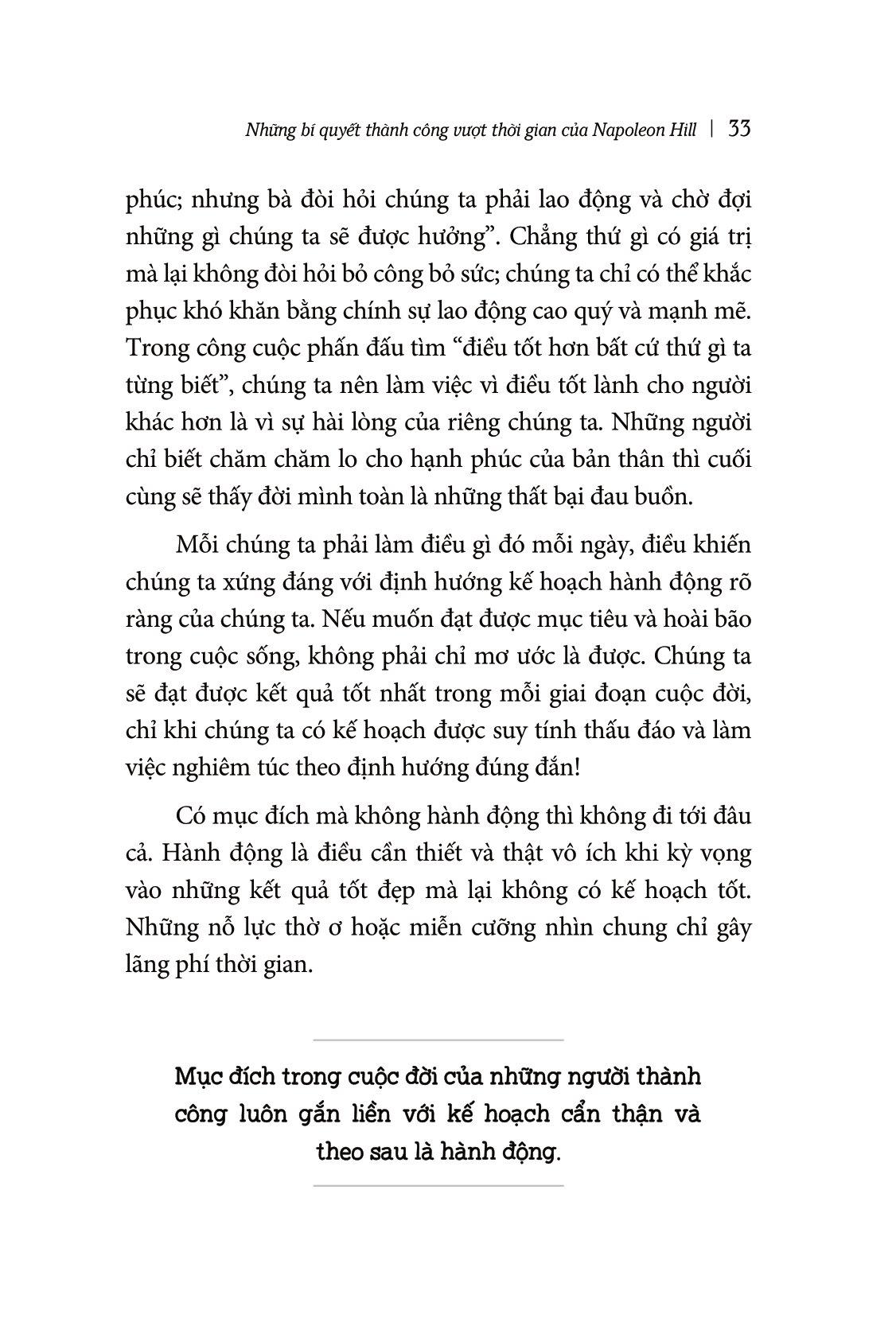Điều tôi muốn bạn ghi nhớ là không phải những gì bạn đạt được hay làm được trong đời sẽ giúp bạn thành công, dẫu bạn đang có trong tay chất liệu là những điều tôi nói ở đây, hay từ một tác giả tài năng nào khác hiện nay. Việc trở thành triệu phú hoặc tỉ phú có thể mang lại cảm giác thú vị và việc đạt được một mục tiêu đáng giá nào đó có thể khiến bạn thỏa mãn, nhưng mục tiêu quan trọng mà bạn nên vạch ra trong tiềm thức là sau quá trình đó bạn sẽ trở thành ai, đó mới là điều cần quan tâm nhất. Ben Sweetland đã rất đúng khi viết rằng: “Thành công là một hành trình, chứ không phải đích đến”.
