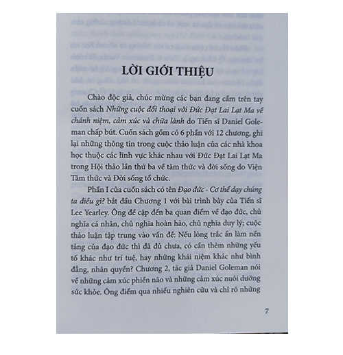 Hành trình tri thức dẫn lối đến bình an nội tại Ngay từ khi ra mắt, “Những cuộc đối thoại với Đức Đạt Lai Lạt Ma về chánh niệm, cảm xúc và chữa lành” đã nhanh chóng trở thành điểm sáng trong dòng sách chữa lành tâm lý. Không chỉ được đón nhận bởi độc giả yêu quý sách, cuốn sách còn thu hút sự quan tâm sâu sắc từ cộng đồng khoa học hành vi, giới trị liệu tâm lý và các nhà xuất bản chuyên đề.   Bằng những cuộc trò chuyện sâu sắc giữa Đức Đạt Lai Lạt Ma với các nhà khoa học, tác phẩm mở ra một góc nhìn toàn diện và thấu đáo về mối liên hệ giữa cảm xúc - hành vi - chánh niệm. Qua đó, người đọc không chỉ hiểu được nguyên nhân gốc rễ của những tổn thương tinh thần mà còn được hướng dẫn những phương pháp thiền chánh niệm thực hành hằng ngày, để từ đó tự mình vững vàng bước vào hành trình chữa lành từ bên trong.   Tri thức chữa lành: Giao thoa giữa khoa học và tôn giáo Điểm đặc biệt khiến cuốn sách trở nên nổi bật chính là cách tiếp cận vừa khoa học, vừa giàu tính nhân văn. Đức Đạt Lai Lạt Ma với phong thái từ bi, thông tuệ và đôi khi dí dỏm, đã khéo léo dẫn dắt độc giả qua những vấn đề gai góc nhất của đời sống hiện đại từ căng thẳng, lo âu, trầm cảm đến mất kết nối với bản thân.   Từ lý luận đến thực tiễn, mỗi trang sách là một bước chậm rãi nhưng vững chãi giúp người đọc từng bước nhận diện và chấp nhận cũng như đối diện với cảm xúc tiêu cực. Từ đó, độc giả thêm thấu hiểu cơ chế tâm lý phía sau những phản ứng của chính mình. Đồng thời, bạn đọc cũng có cơ hội ứng dụng thiền chánh niệm để điều chỉnh hành vi, làm dịu tâm trí và hướng tới lối sống an yên.