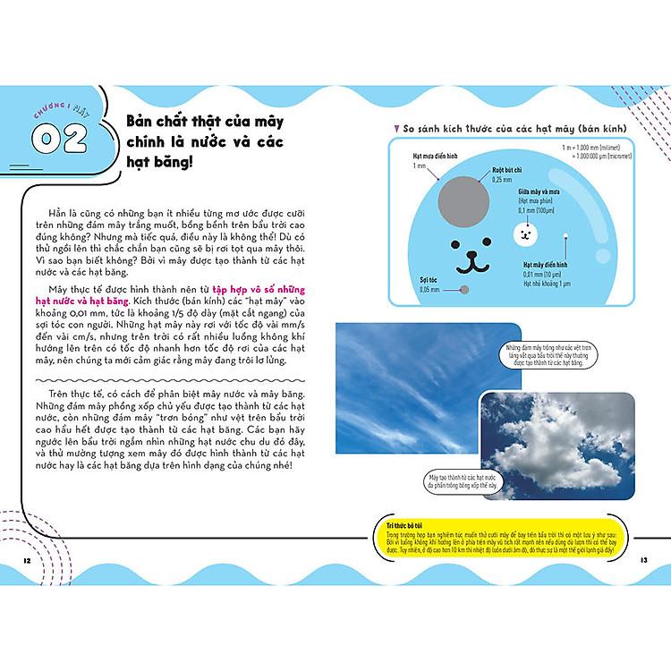 Mua tại TiktokMỗi khi ngước nhìn bầu trời, hẳn mỗi người trong chúng ta đều một lần nghĩ rằng: “Mình muốn leo lên những đám mây khổng lồ quá!”, hoặc “Không biết điểm cuối của cầu vồng ở đâu nhỉ?”. Bầu trời quá đỗi thân thuộc khi ngày ngày chúng ta vẫn ngắm nhìn nó và lắng nghe dự báo thời tiết trên tivi, thế nhưng vẫn còn rất nhiều điều về bầu trời mà chúng ta chẳng hay biết đến. Với cách diễn giải đơn giản, dễ hiểu cùng hình minh họa trực quan, sinh động, bộ sách Những Kì Quan Thời Tiết – Từ Điển Bỏ Túi Về Các Hiện Tượng Thiên Nhiên Kì Thú sẽ giải đáp nhiều thắc mắc của độc giả về bầu trời, các đám mây, các hiện tượng thời tiết vừa quen thuộc, vừa lạ kì. Bộ sách sẽ kéo gần khoảng cách giữa chúng ta với bầu trời và những đám mây, khiến bạn phải sửng sốt thốt lên: “A! Nguyên do của hiện tượng đó là thế!”
