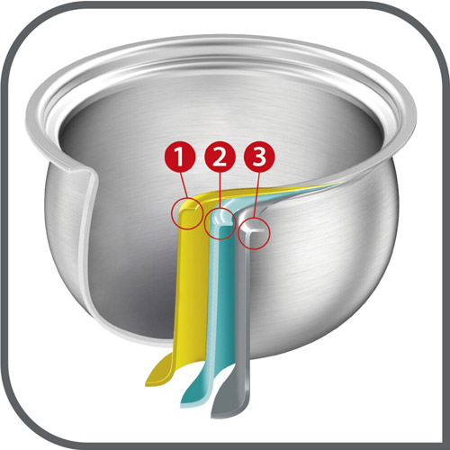 - Cùng với hai lòng nồi riêng biệt, giúp cho sản phẩm khác biệt hẳn so với các loại nồi áp suất. Một lòng nồi thép không gỉ dùng để nấu các món ăn khác nhau. Một lòng nồi nhôm có phủ chống dính dùng để nấu cơm và các loại thức ăn dính khác. Lòng nồi được thiết kế dưới dạng nồi nêu, giúp thức ăn được chín đều và ngon hơn. Rất tiện lợi để bạn có thể chế biến nhiều món ăn khác nhau.