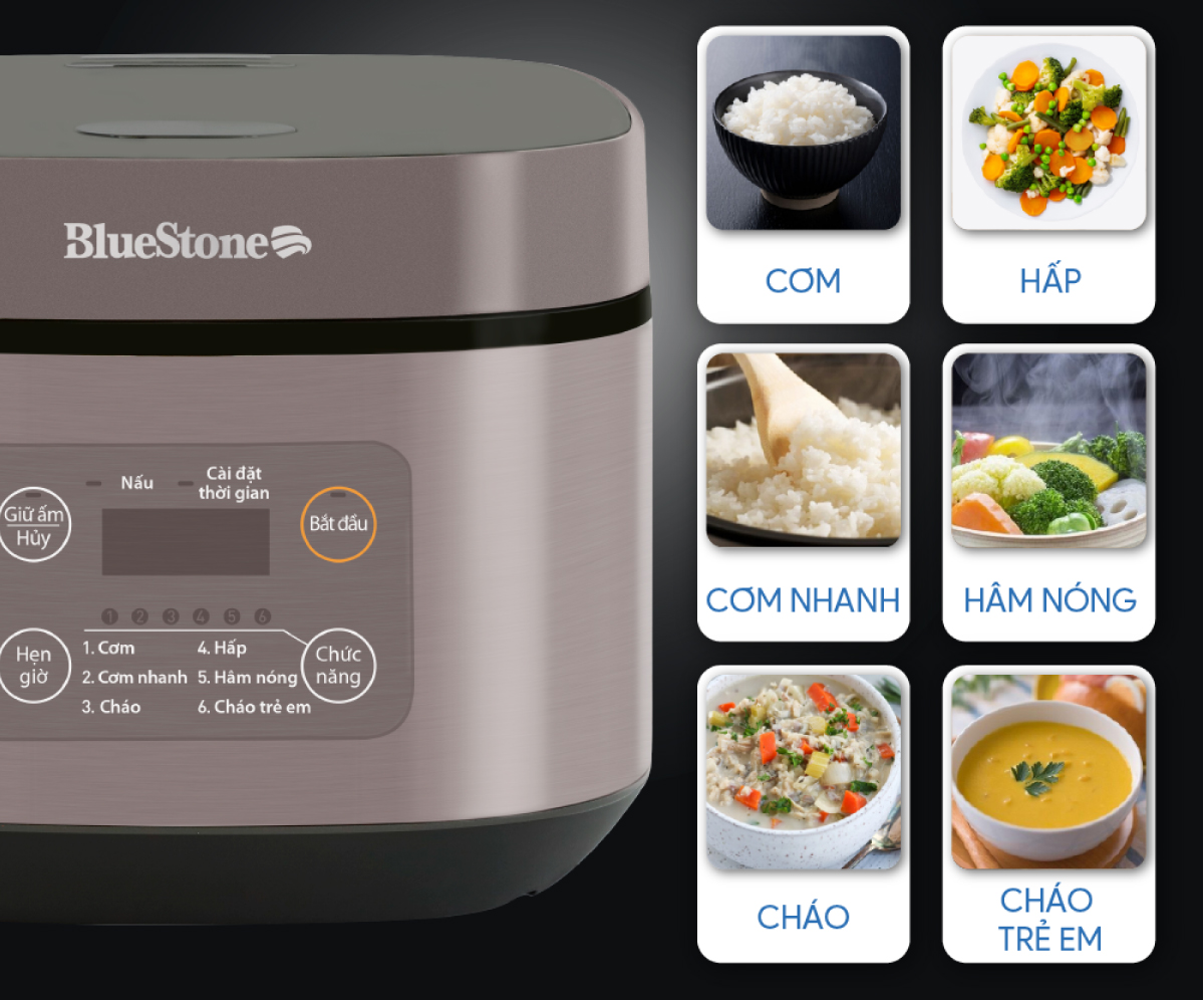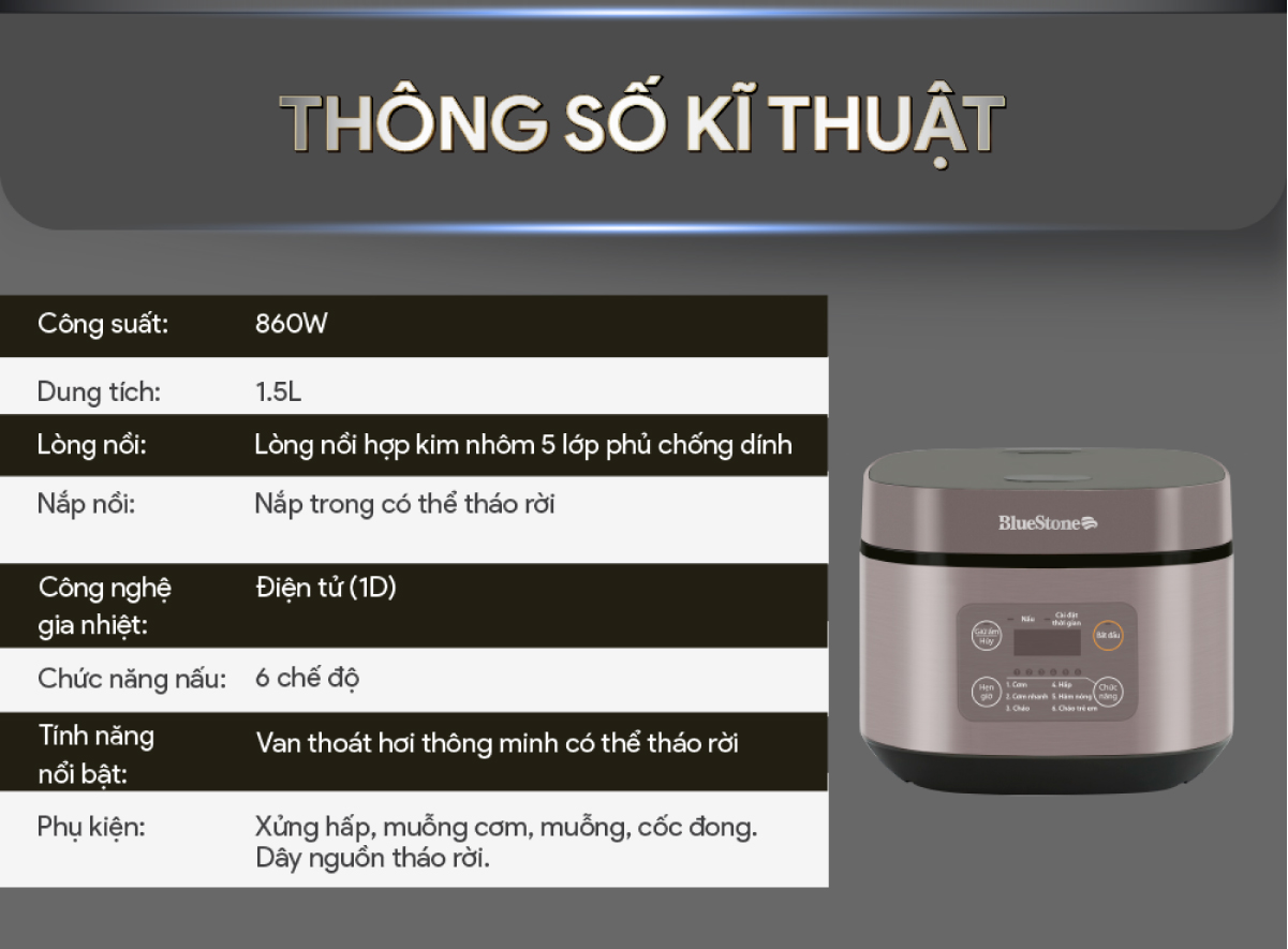 ✨Nồi Cơm Điện Tử BlueStone RCB-5946 - Dung Tích 1,5 lít - Công suất 860W - Lòng nồi phủ chống dính cao cấp an toàn sức khỏe - 6 chế độ cài đặt sẵn - Bảo hành 2 năm - Hàng chính hãng