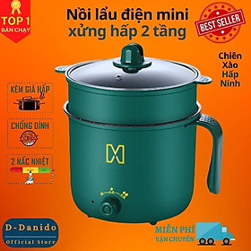 Nồi điện đa năng 1.3 Lít Nồi lẩu mini, ca nấu mì cao cấp 2 tầng Nồi điện với 2 nấc nhiệt thế hệ mới có tay cầm Hàng chính hãng D Danido D