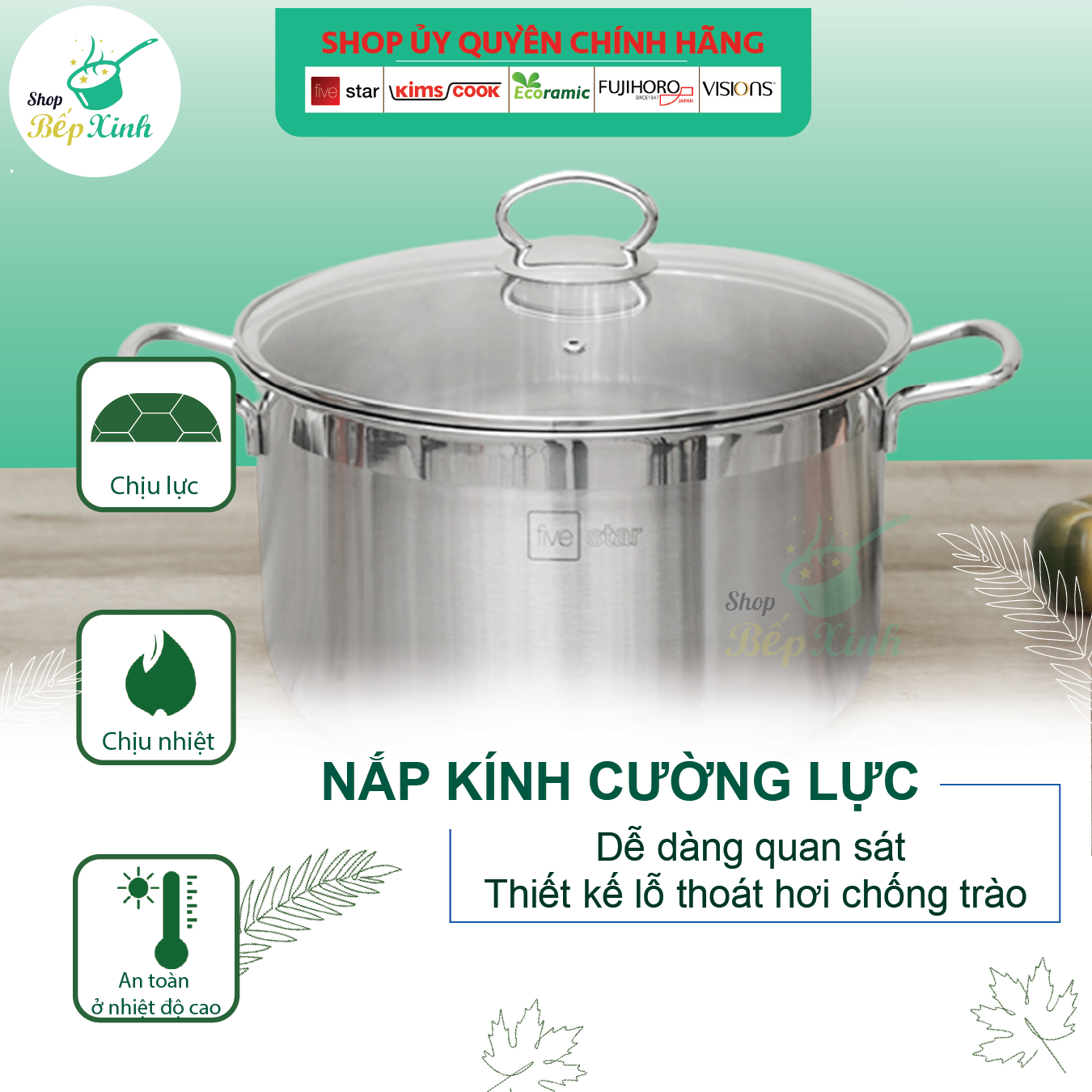 Bộ Nồi Xửng Hấp 26cm Inox 3 Đáy Fivestar Nắp Kính Dùng Bếp Từ