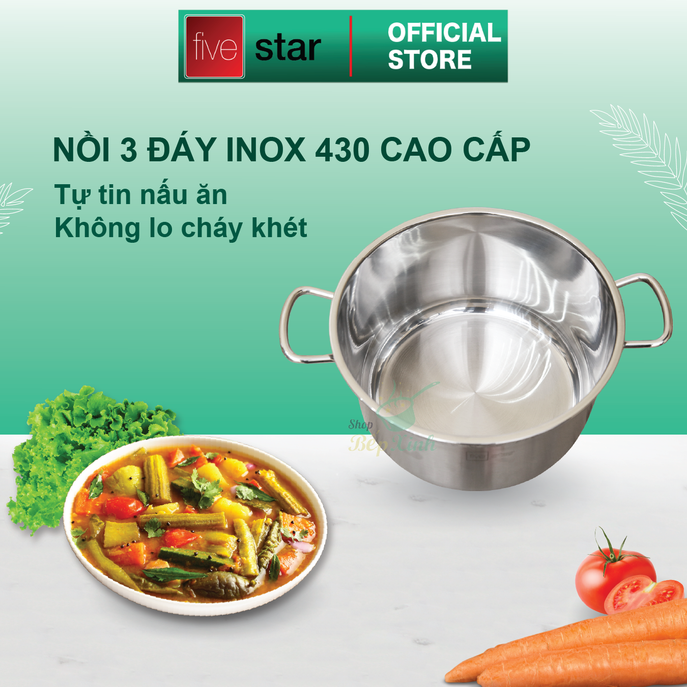 Nồi Inox 304 chống dính 3 đáy Fivestar 20cm dùng bếp từ, chính hãng bảo hành 60 tháng #sanhangre