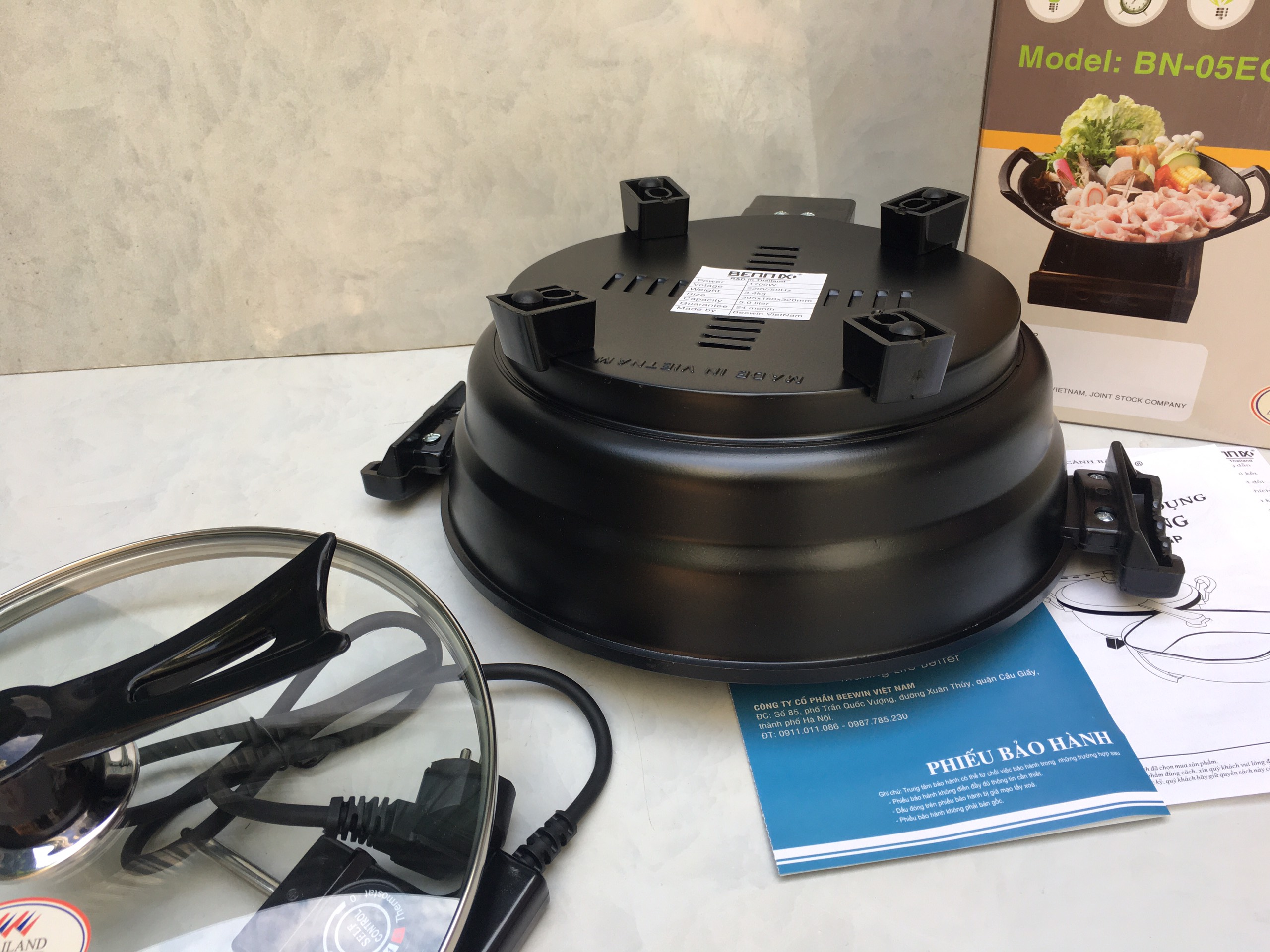 Tên sản phẩm: Nồi lẩu điện đa năng Model: BN-05EGP Thương hiệu: Bennix Thái Lan Sản xuất tại Việt Nam Dung tích: 5 lít Công suất: 1700W | Điện áp: 220V - 50Hz Lòng nồi: