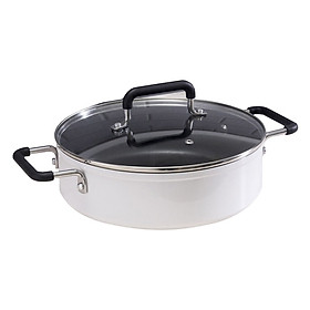 Thiết kế nhã nhặn đẹp mắt - Nắp kính dày trong suốt - Chất liệu Inox cao cấp - Đường kính 28 cm - Thiết kế tay cầm tiện lợi Nồi lẩu Inox 28cm có