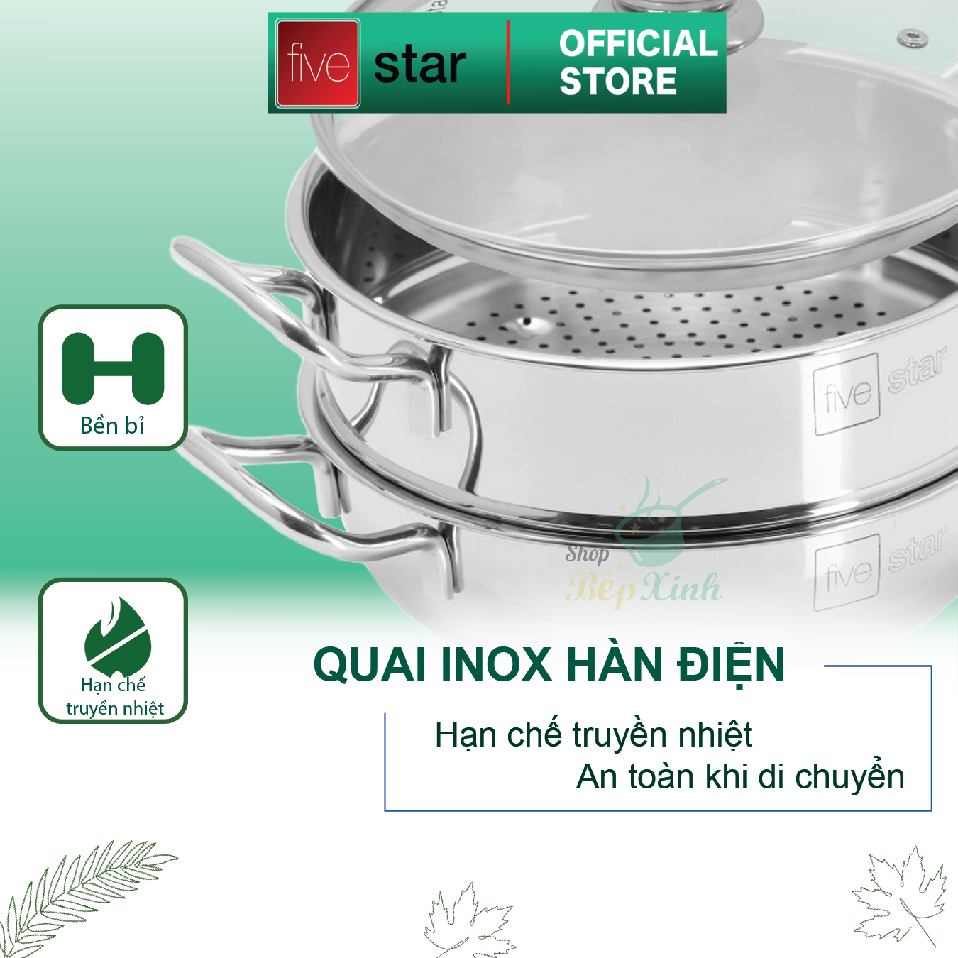 Bộ nồi xửng hấp Inox 3 đáy Fivestar 30cm bền đẹp, bảo hành 5 năm chuẩn hàng Việt Nam chất lượng cao