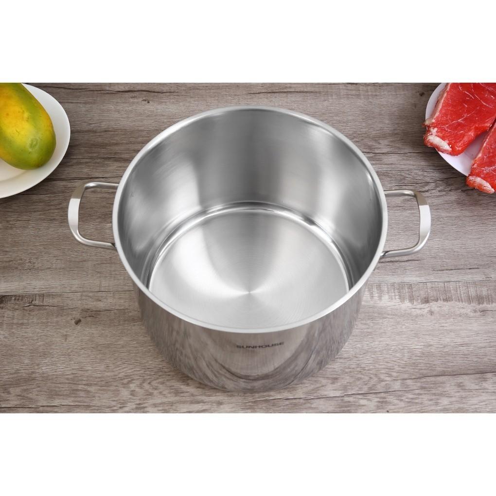 Nồi lẩu inox 1 đáy SUNHOUSE SH28LG có vung kính cường lực, dày 4mm, trong suốt, giúp bạn dễ dàng quan sát thực phẩm bên trong nồi.