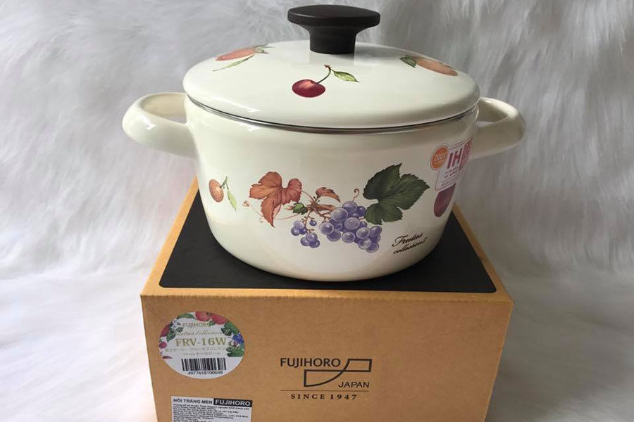 Nồi Tráng Men Hoa Văn Trái Cây Sử Dụng Bếp Từ Fujihoro FRV-16W sở hữu thiết kế tinh tế với màu sắc và họa tiết đẹp mắt, góp phần mang đến phong cách sang trọng, hiện đại cho không gian bếp, bàn ăn nhà bạn. Nắp đậy kín giúp tăng khả năng giữ nhiệt và ngăn ngừa bụi bẩn, vi khuẩn xâm nhập hiệu quả. Tay cầm hai bên và núm nắp chắc chắn, cách nhiệt, giúp bạn dễ dàng thực hiện các thao tác nấu và di chuyển nồi khi cần thiết.