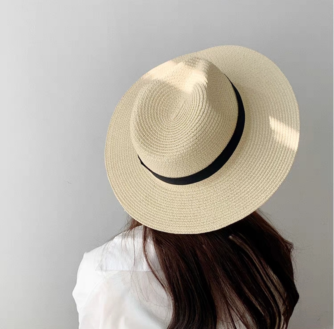 Mũ cói rơm vành phẳng nữ mùa hè phiên bản Hàn Quốc chống nắng UV cho kỳ nghỉ Nón đi biển Paris thời trang hàng đầu Pháp Chất liệu cói