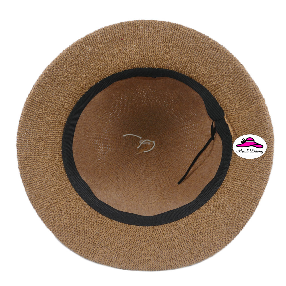 Nón vành nhỏ fedora chất liệu cói mũ rộng vành đi biển phối nơ đai đen thời trang Hàn Quốc Chất liệu cói thoáng mát Kích thước vành rộng 5cm Chất liệu cói thoáng mát
