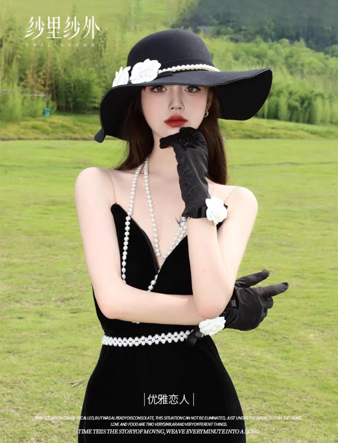 ✨Nón fedora vành rộng mũ rộng vành nỉ phối 2 hoa trắng đai ngọc trai nhân tạo sang trọng