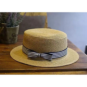 Mũ cói rơm vành phẳng nữ mùa hè phiên bản Hàn Quốc chống nắng UV cho kỳ nghỉ Nón đi biển Paris thời trang hàng đầu Pháp Chất liệu cói