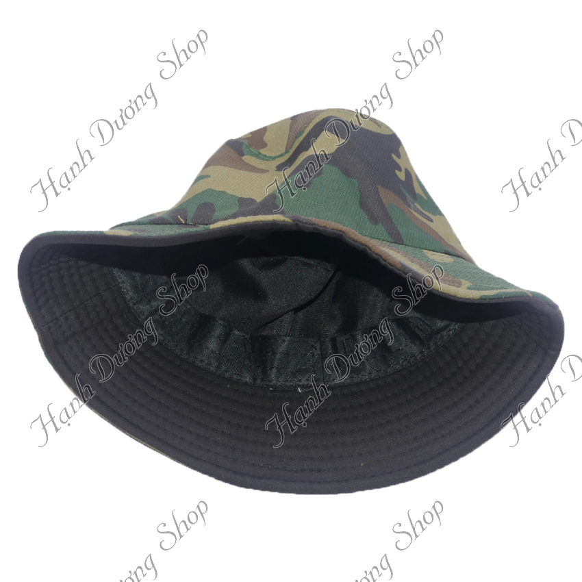 Nón tai bèo nam sọc rằn ri phong cách bụi cá tính, vành rộng chống nắng tốt - Hạnh Dương Nón bucket tai bèo sọc lính được may từ chất liệu vải kaki bền chắc,