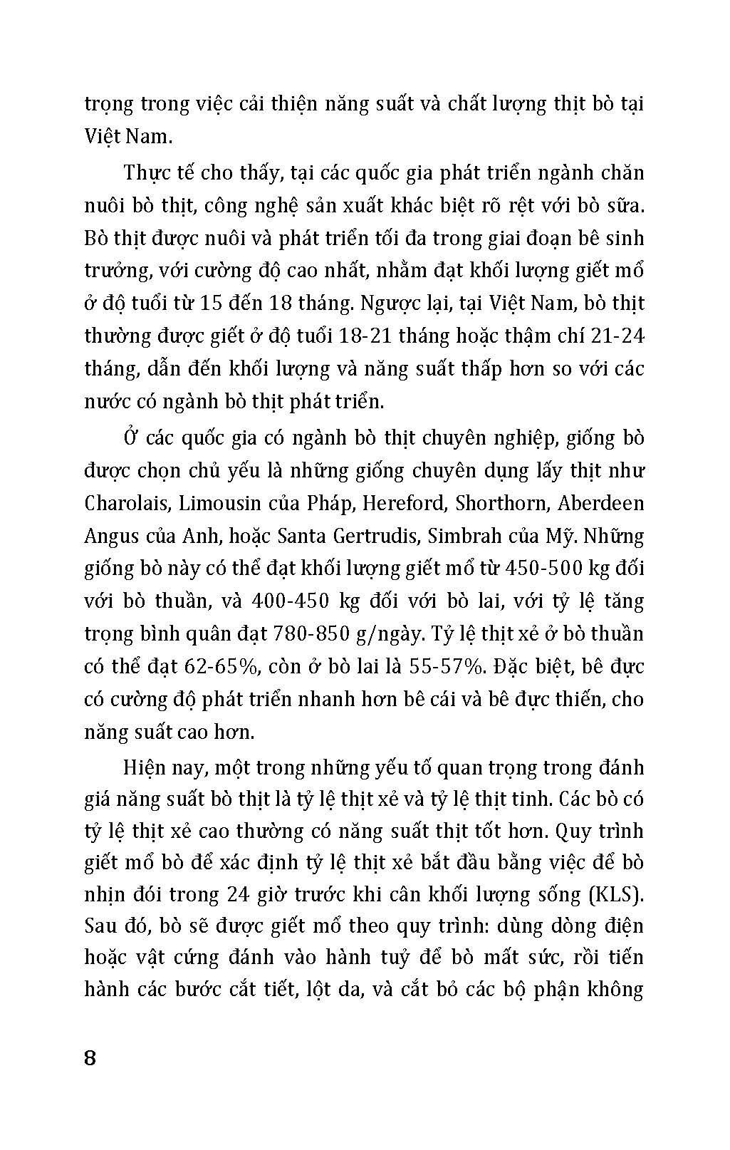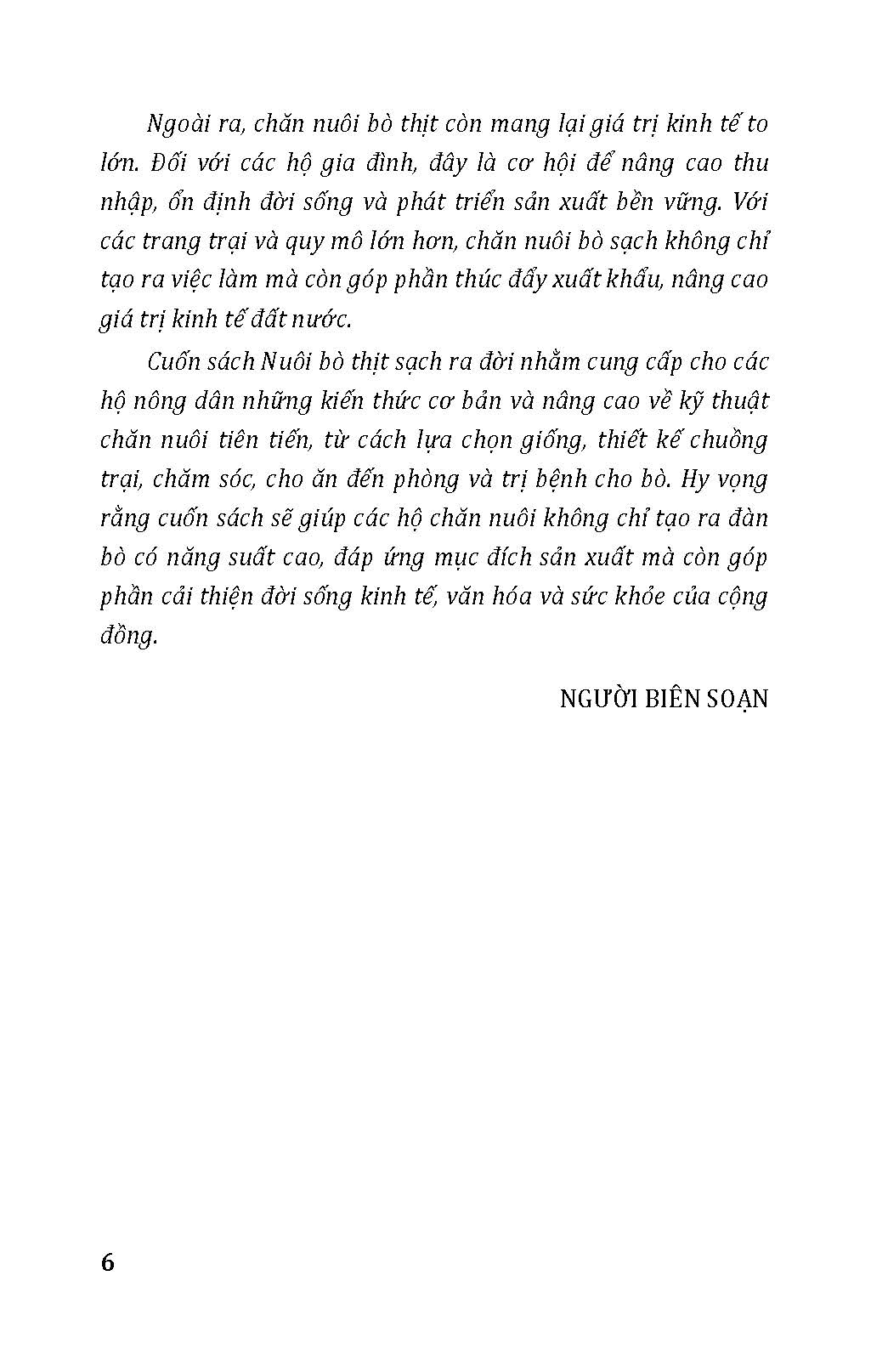 Mua tại TiktokCung cấp những kiến thức cơ bản và nâng cao về kỹ thuật chăn nuôi bò lấy thịt, từ cách lựa chọn giống, thiết kế chuồng trại, chăm sóc, thức ăn cho đến phòng và trị bệnh, vệ sinh trong chăn nuôi, giúp các hộ chăn nuôitạo ra đàn bò có năng suất cao, đáp ứng mục đích sản xuất, nâng cao thu nhập, ổn định đời sống và phát triển sản xuất bền vững, góp phần thúc đẩy xuất khẩu và mang lại giá trị kinh tế cao.