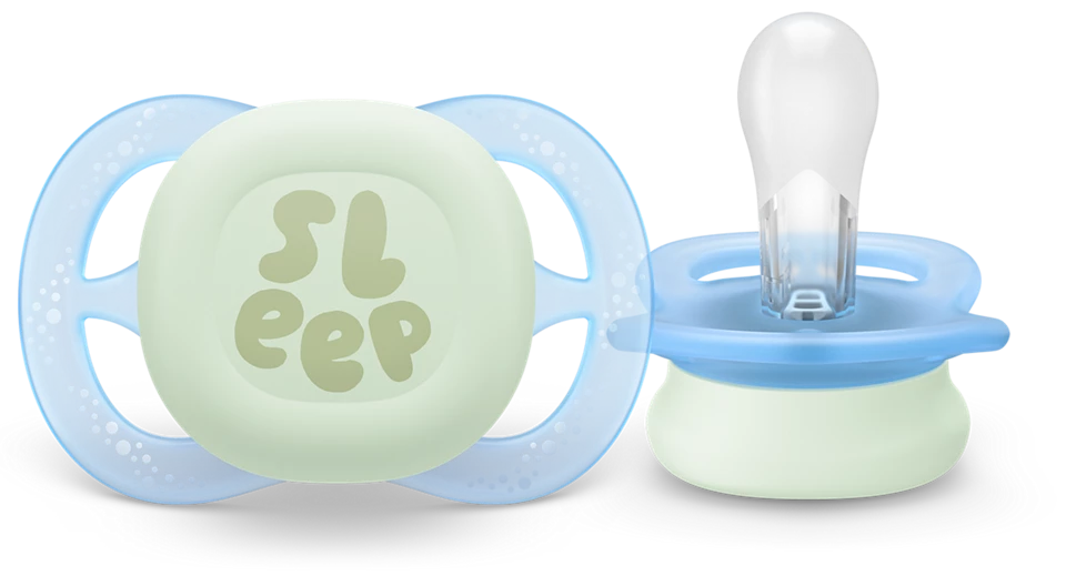 ✨Núm Ti Ngậnh ban đêm Philips Avent Ultra Start, dành cho trẻ sơ sinh, phát sáng trong bóng tối, núm vú giả bằng silicon đối xứng, không chứa BPA, có hộp đựng/tiệt trùng Vỉ Đơn