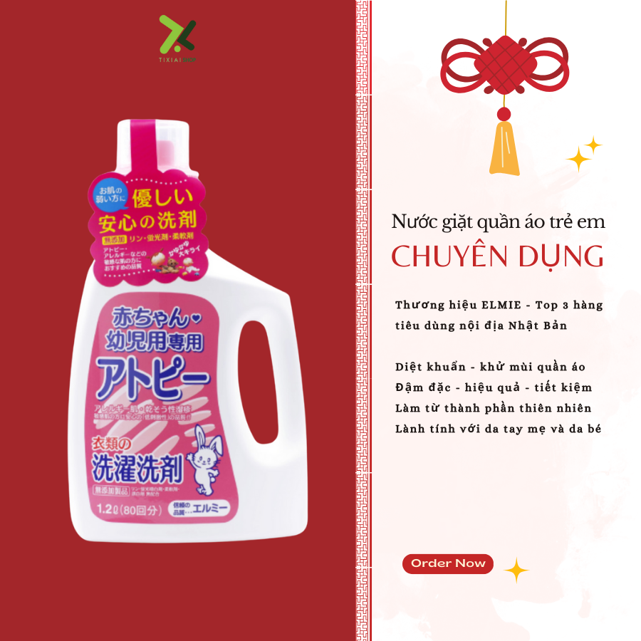 ✨Nước giặt quần áo Elmie không chất phụ gia dành cho trẻ sơ sinh và trẻ nhỏ - 1200ml (Hàng nội địa Nhật Bản)