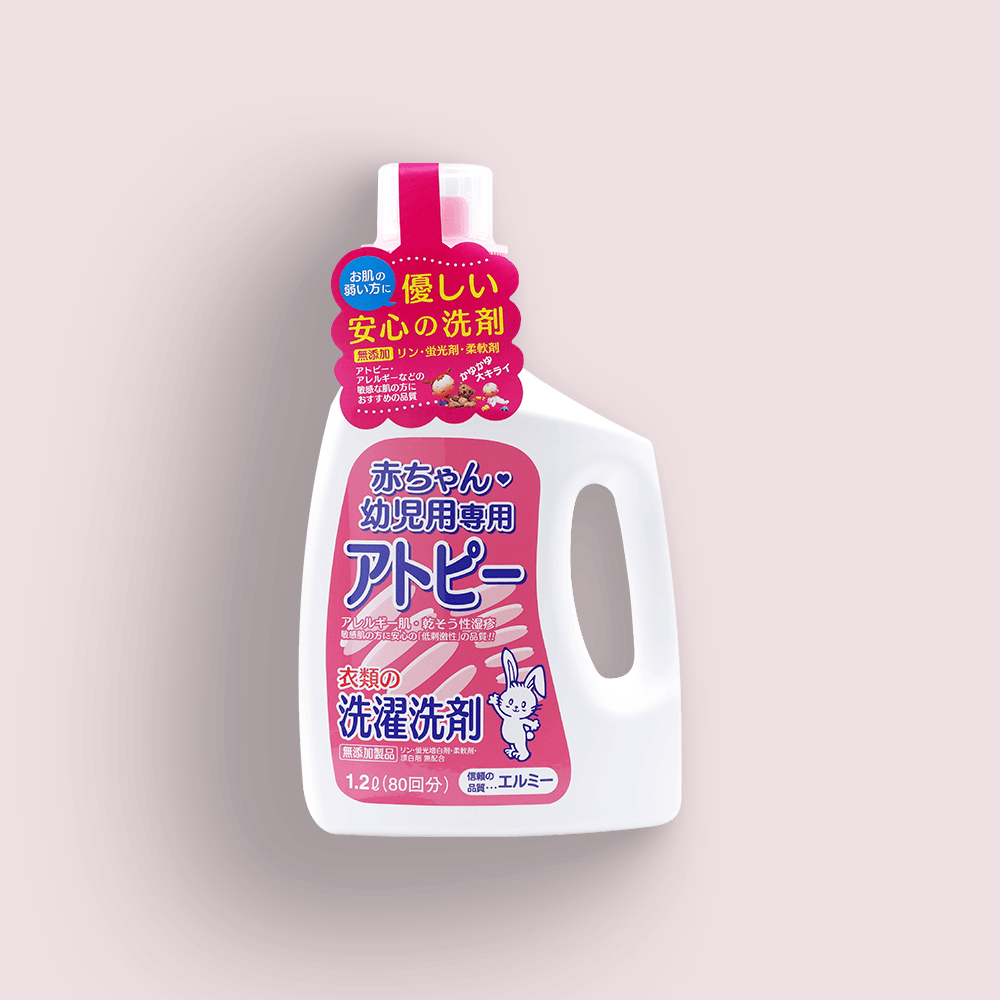 • Đặc điểm của Xà phòng và bột giặt thông thường khác là còn sót lại trên quần áo sau khi giặt sẽ dần dần hòa tan vào da do nhiệt độ cơ thể và mồ hôi sau khi mặc quần áo có thể gây ra tác hại chẳng hạn như : ngứa, phát ban và chàm. Để giảm tác dụng phụ của các chất tẩy rửa còn sót lại này, sản phẩm này là một chất tẩy rửa nhẹ, dịu nhẹ đã được tạo ra để ngăn chất tẩy rửa còn sót lại sau khi xả và loại bỏ các chất phụ gia khác nhau có thể gây kích ứng da.