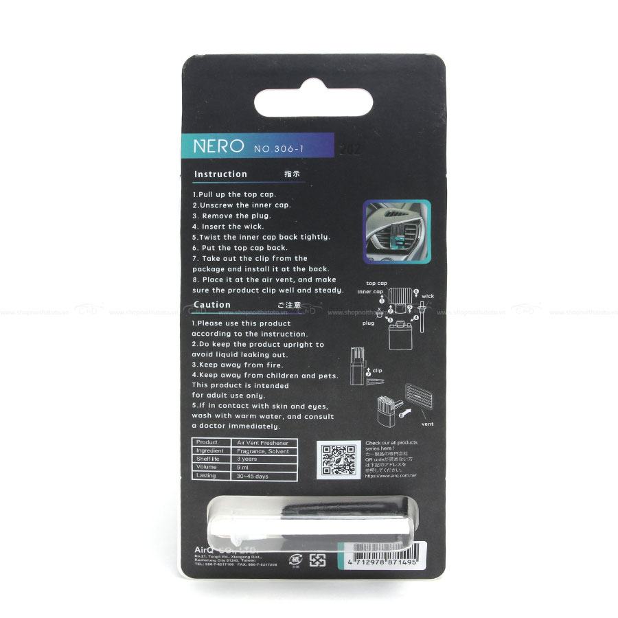 - Nước hoa ghim máy lạnh AIR-Q NERO DUO-MAGIC ARGYLE NO306-1 Men AF 9ml được chế tạo bằng công thức đặc biệt với hương tự nhiên, dịu nhẹ.