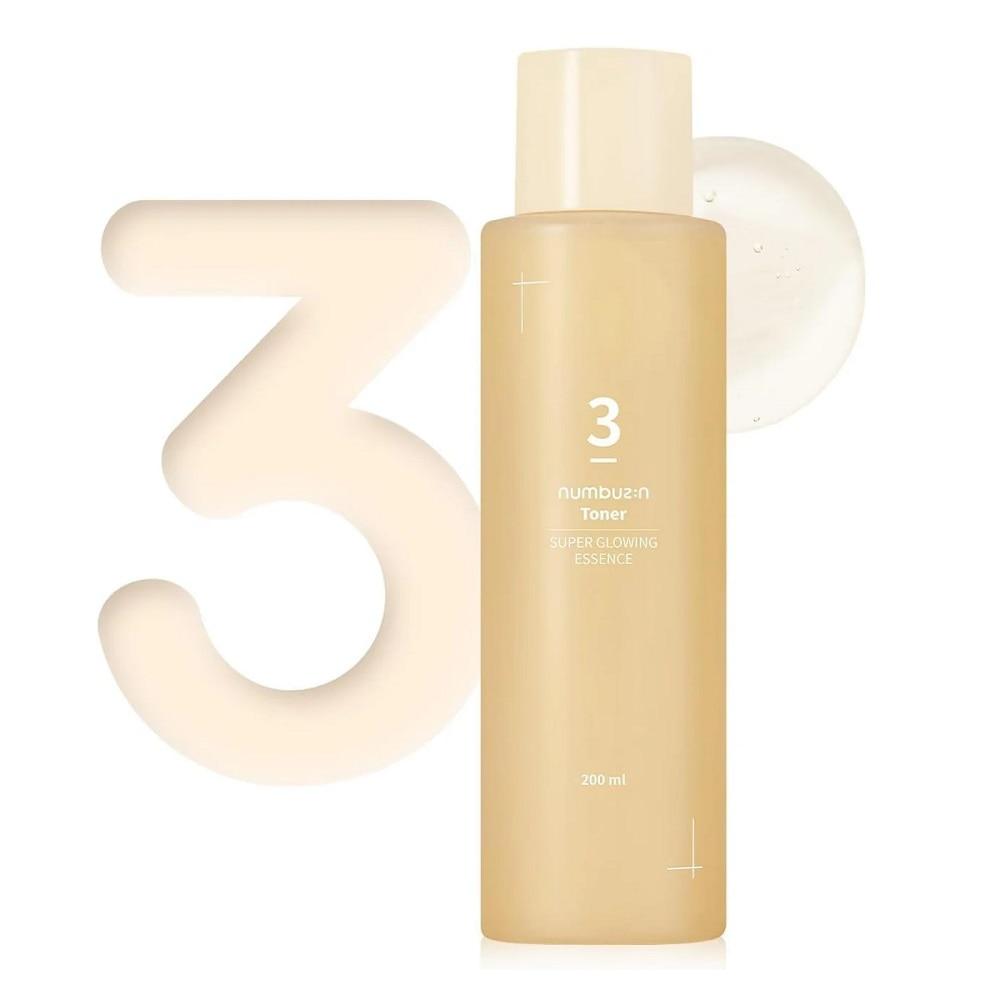 Glow like never before with **Numbuzin No.3 Super Glowing Essence Toner**! ✨