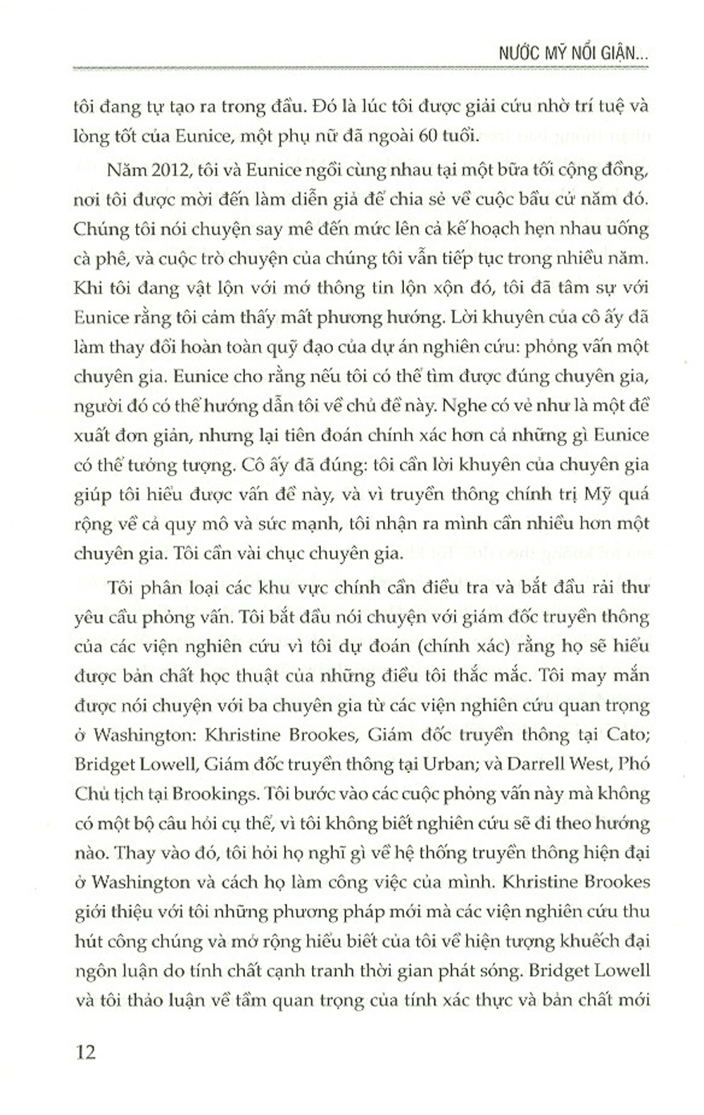 Cuốn sách nỗ lực giải thích cơn bão tiền bạc, công nghệ và tinh thần đảng phái đã tạo ra hai thái cực thông tin hoàn toàn tách biệt: một vòng tròn nhỏ, khép kín cho cánh hữu và một khu vực rộng mở, ngổn ngang cho những người còn lại. Điều này hình thành hai thực tế, hai câu chuyện và hai phe phái chính trị bất đồng quan điểm với cơn giận dữ khủng khiếp thường trực khắp nơi. Để nắm bắt đầy đủ các khía cạnh sâu xa của thế giới truyền thông, tác giả đã tiến hành nhiều cuộc phỏng vấn chuyên sâu với các nhân vật truyền thông và chính trị gia hàng đầu nước Mỹ, phân tích từng bước phát triển của cỗ máy truyền thông, đưa ra những gợi ý về cách khôi phục đối thoại quốc gia, trong khi vẫn bảo vệ quyền thể hiện thái độ bất đồng một cách phù hợp.