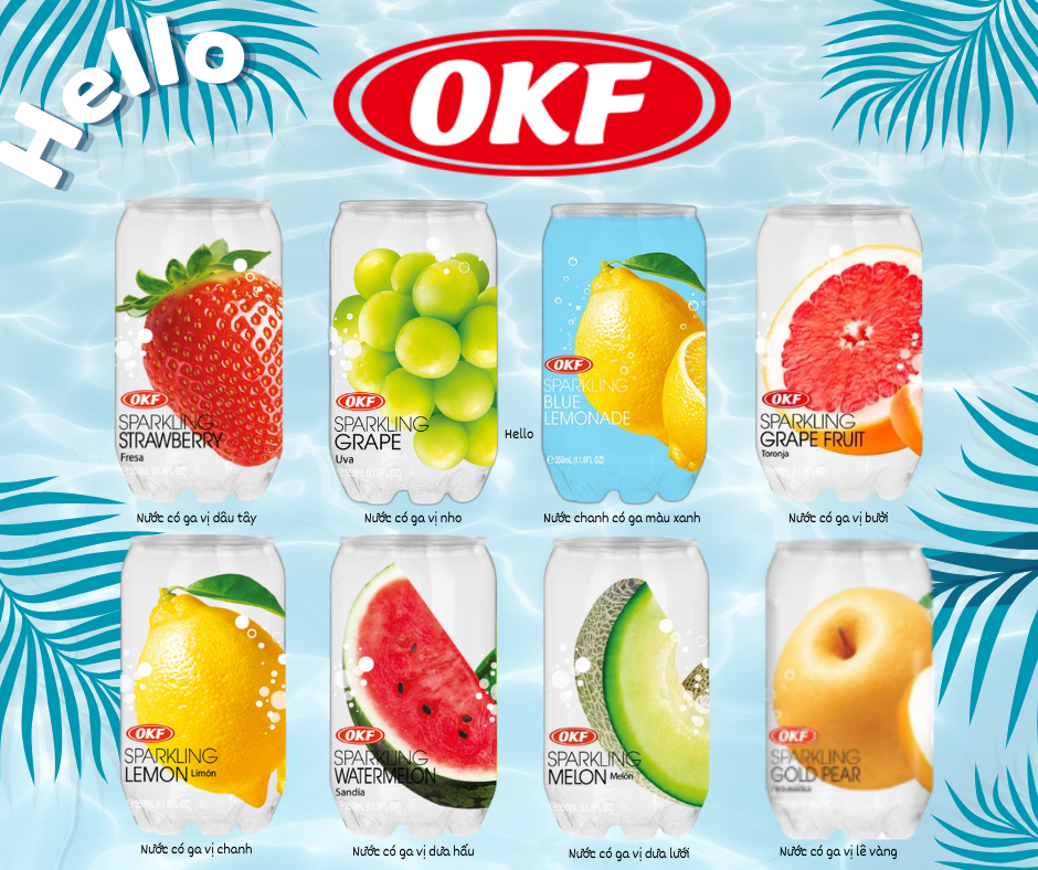 Tên sản phẩm: Nước ngọt OKF sparkling vị dưa lưới - Đây là sản phẩm của Hàn Quốc. - Nước có ga hương dưa chứa nước ép dưa rất lý tưởng để giải khát và