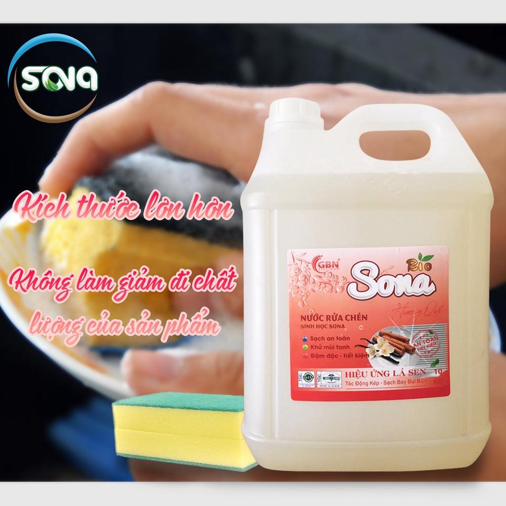 Nước rửa chén/bát sinh học SONA 10kg nước rửa bát hữu cơ tinh dầu quế sạch siêu tốc tiết kiệm nước không hại da tay