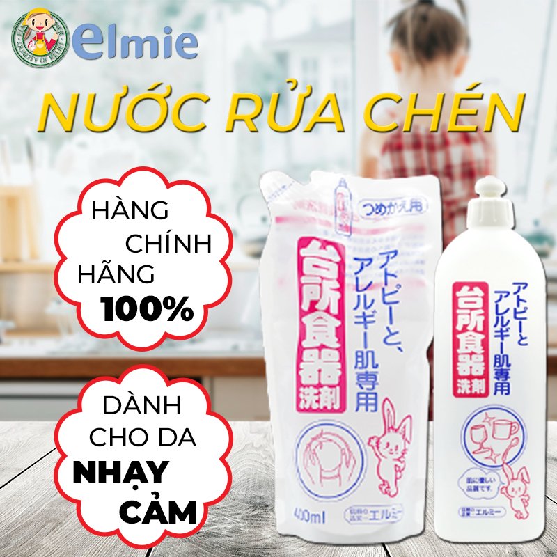 Nước Rửa Chén Elmie Dành Cho Da Thường, Da Nhạy Cảm Và Nước Rửa Bình Sữa Elmie (Hàng nội địa Nhật)
