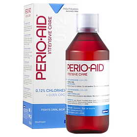 Nước súc miệng kháng khuẩn Perio-Aid Intensive Care 500mlPERIO-AID là sản phẩm chăm sóc răng miệng được chỉ định để duy trì sức khỏe nha chu. Dòng sản phẩm có một công thức cụ thể kết hợp hai t...