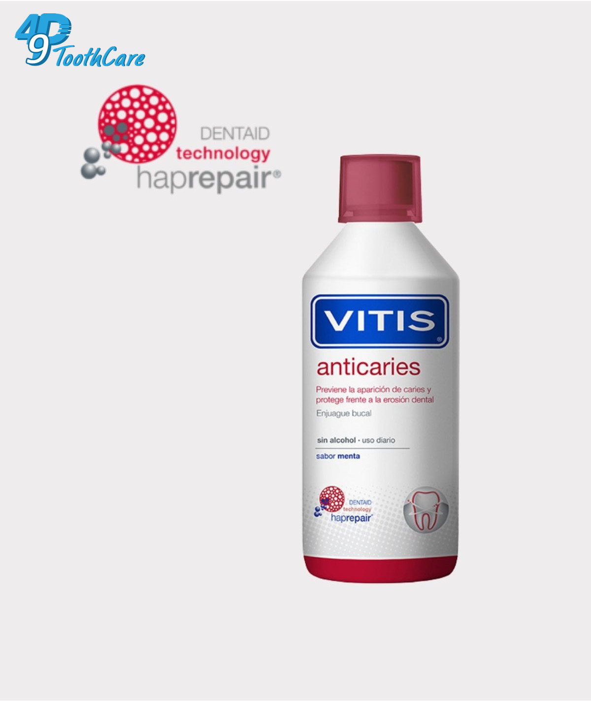Nước súc miệng Vitis Sensitive chứa công nghệ tái tạo nano Dentaid tạo thành một lớp bảo vệ giúp phục hồi, tái tạo bề mặt men răng một cách tự nhiên. Bịt kín các ống