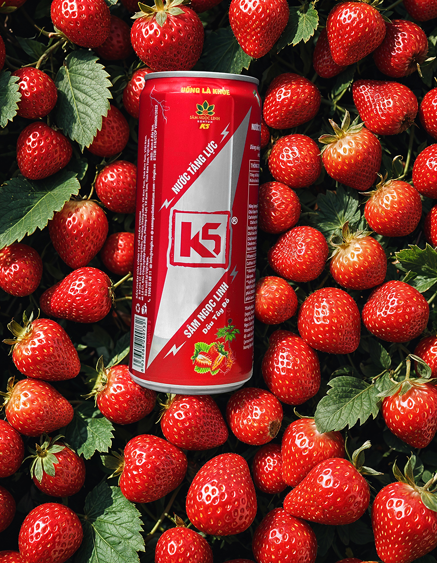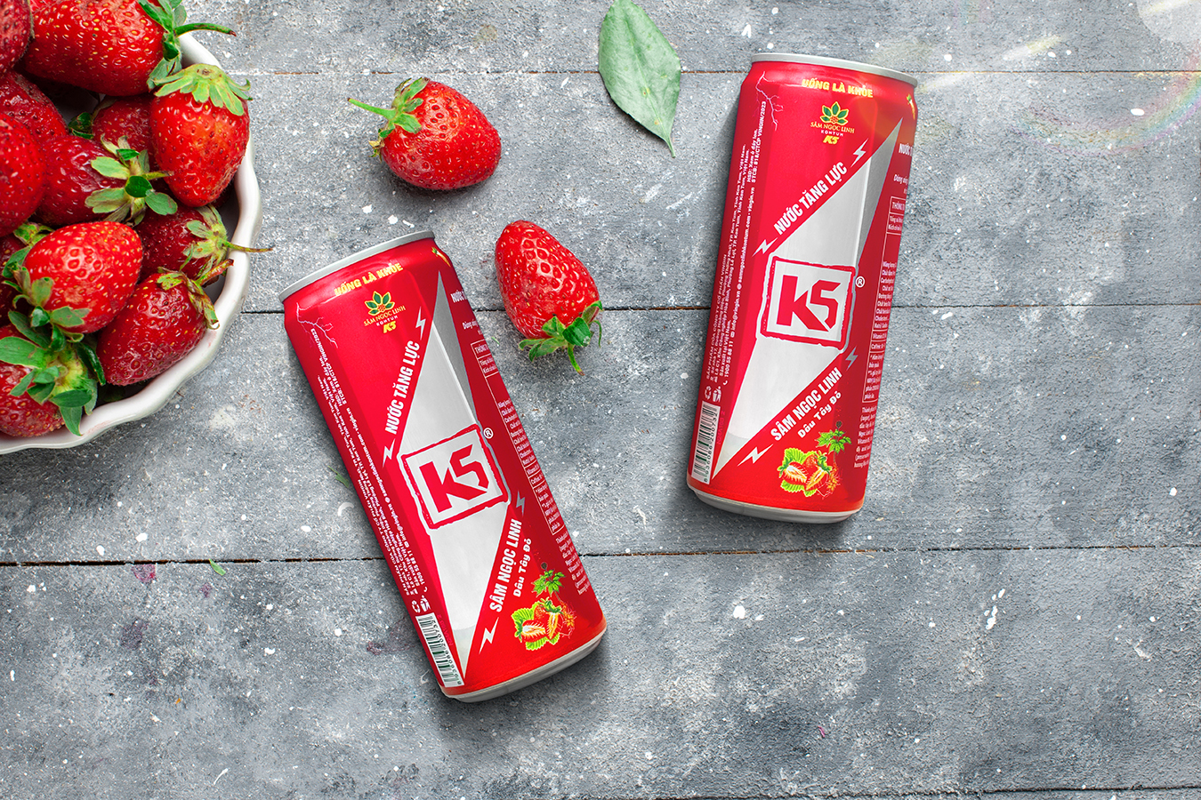 ✨Nước Tăng Lực K5 Sâm Ngọc Linh Thùng 24 Lon Vị Dâu Tây Đỏ (320ml/Lon)