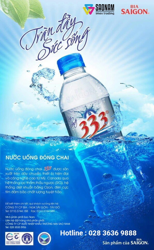 SẢN PHẨM NƯỚC UỐNG ĐÓNG CHAI CAO CẤP SÀI GÒN WATER, 333 WATER