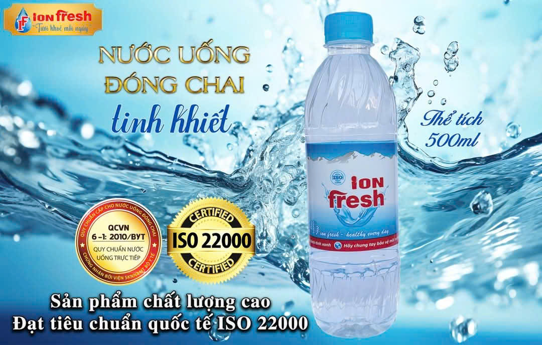 Tên sản phẩm: iON FRESH 500ml - Nước uống đóng chai tinh khiết - iON FRESH 500ml - Quy chuẩn sản xuất được áp dụng: QCVN 6-1: 2010 BYT - Công nghệ xử lý: Khai