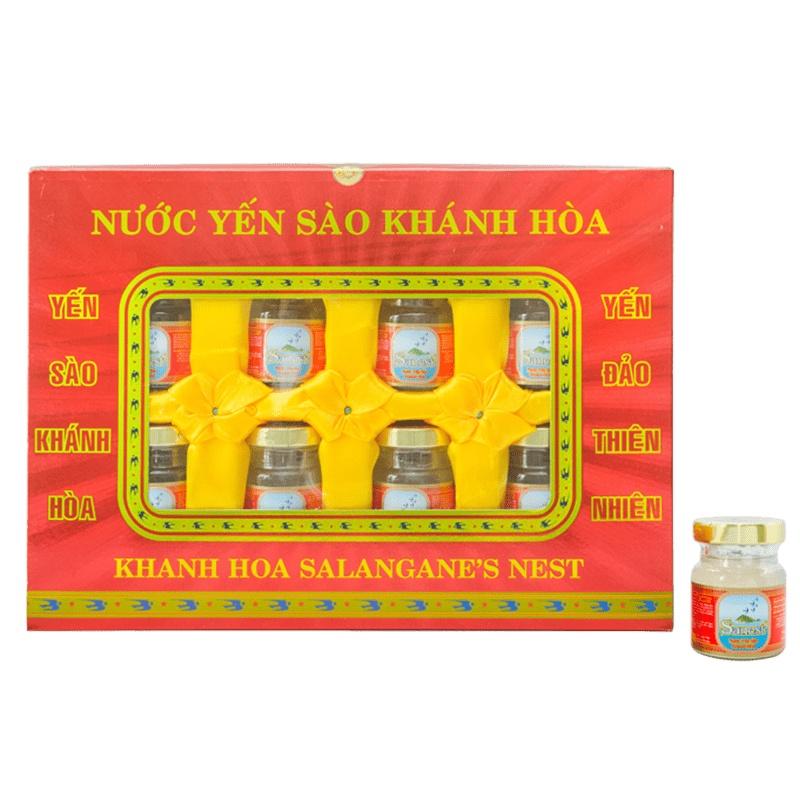 Mua tại TiktokNước Yến Sào️ CAO CẤP️Khánh Hòa Sanest Lọ 70ml, Hộp 8 Lọ - 002H8 ---------------️️️----------------- Thông Tin Sản Phẩm: Nước Yến sào Khánh Hòa Sanest được sản xuất từ nguồn Yến sào thiên nhiên do Công ty Yến sào Khánh Hòa trực tiếp khai thác tại các đảo Yến Khánh Hòa. Nước Yến sào Khánh Hòa Sanest được chế biến theo phương pháp cổ truyền kết hợp với khoa học công nghệ hiện đại trên dây chuyền thiết bị kỹ thuật tiên tiến của Châu Âu. Nước Yến sào Khánh Hòa Sanest chất lượng theo hệ thống quản lý chất lượng quốc tế ISO 9001:2015, ISO 14001:2015 và HACCP. Theo các nguồn khoa học trong nước và thế giới đã chứng minh về công dụng của: