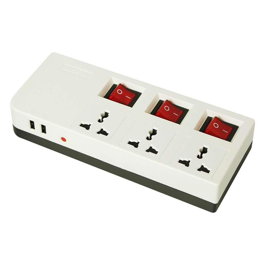 Ổ cắm 3 ổ đa năng + 2 ổ cắm USB cách điện bền đẹp - Chịu nhiệt, chống cháy: 750 độ C - Chiều dài dây điện: 1.8 mét - Chân tiếp xúc với