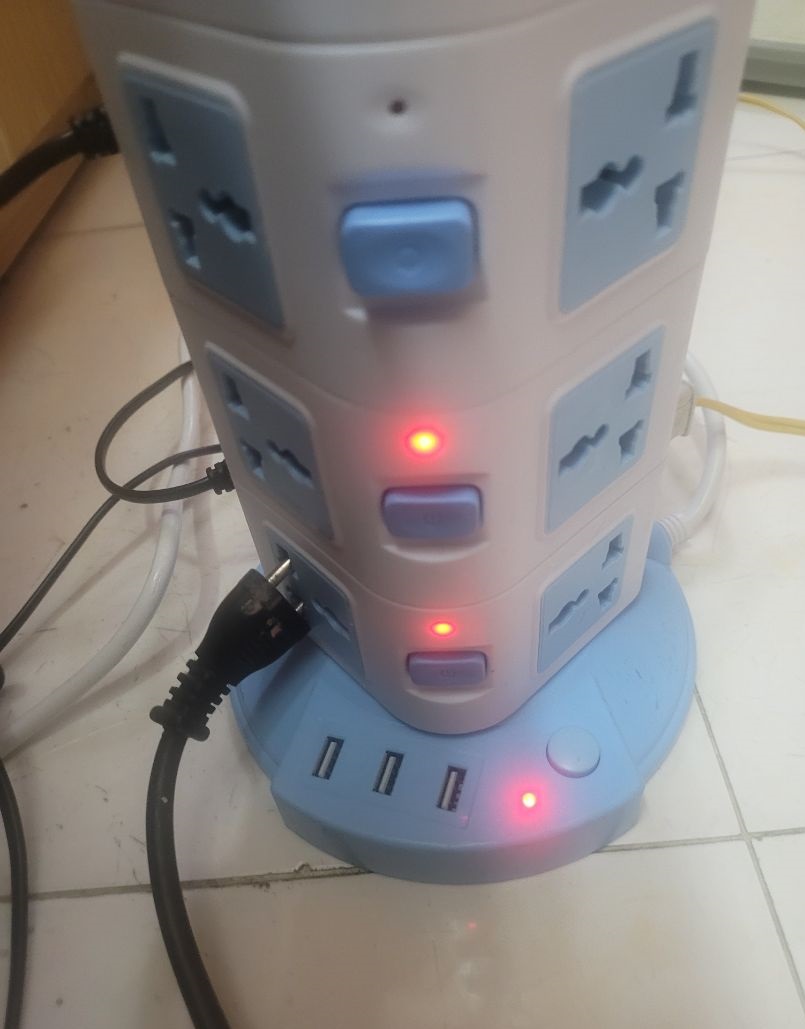 - Ổ cắm điện 4 tầng có công tắc và có đèn led báo hiệu riêng cho từng tầng, . Có 16 lỗ cắm điện nhà và 3 cổng sạc USB 5V dùng sạc điện thoại, máy tính bảng,