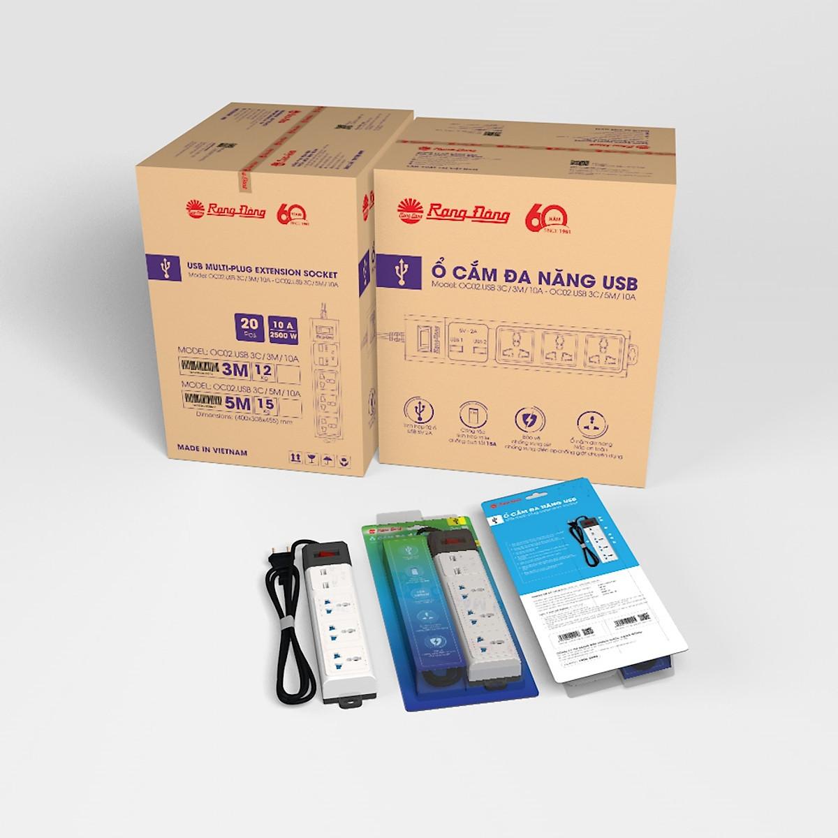 ✨Ổ cắm kéo dài đa năng USB 3m-5m chính hãng Rạng Đông Model: OC02.USB 3C/3M/10A